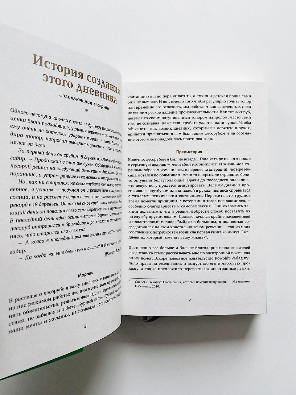 В основе концепции «6 минут. Дневник успеха» – ваше собственное определение успеха в профессиональной и личной жизни. Это может быть желание иметь больше денег, славы, любви, а возможно, спокойствия, независимости. Путь к успеху не менее индивидуален, чем его определение. Дневник поможет поставить цели, которые отвечают вашим личным желаниям и потребностям, а не чужим ожиданиям.