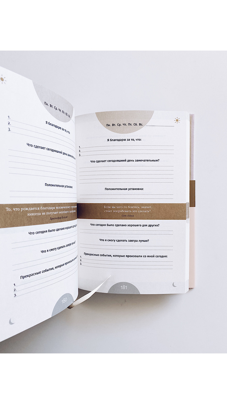 Проверенные на практике принципы позитивной психологии и нейробиологии помогут вам достичь целей, пережить трудные моменты, улучшить отношения с другими людьми и идти по жизни уверенно. С ежедневником вы сможете улучшать свою жизнь постоянно и проактивно, шаг за шагом и каждый день!