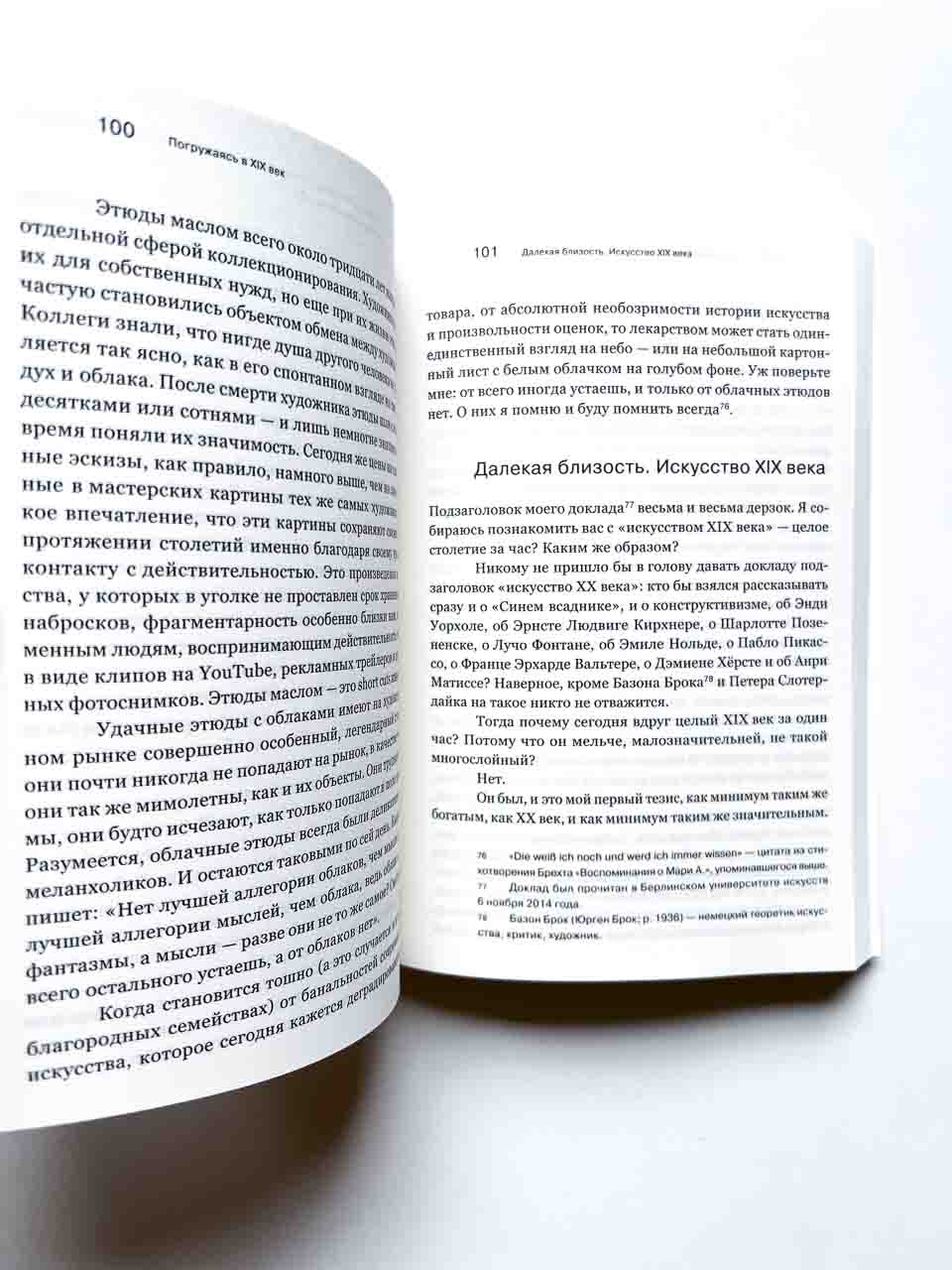Сборник статей и выступлений немецкого искусствоведа Флориана Иллиеса, рассказывающего об искусстве как никто другой увлекательно и вдохновляюще. В книгу вошли его главные тексты об искусстве и литературе, написанные за период с 1997 по 2017 год. В них Иллиес описывает своих личных героев: от Макса Фридлендера до Готфрида Бенна, от Графа Гарри Кесслера до Энди Уорхола. Он исследует, почему лучшие художники XIX века предпочитали смотреть на небо и рисовать облака, и что заставляло их ехать в маленькую итальянскую деревушку Олевано; задается вопросом, излечима ли романтика, и адресует пылкое любовное письмо Каспару Давиду Фридриху. Прошлое в этих текстах ощущается как настоящее, картины предстают в движении и цвете, а исторические фигуры оказываются живыми и любящими людьми.