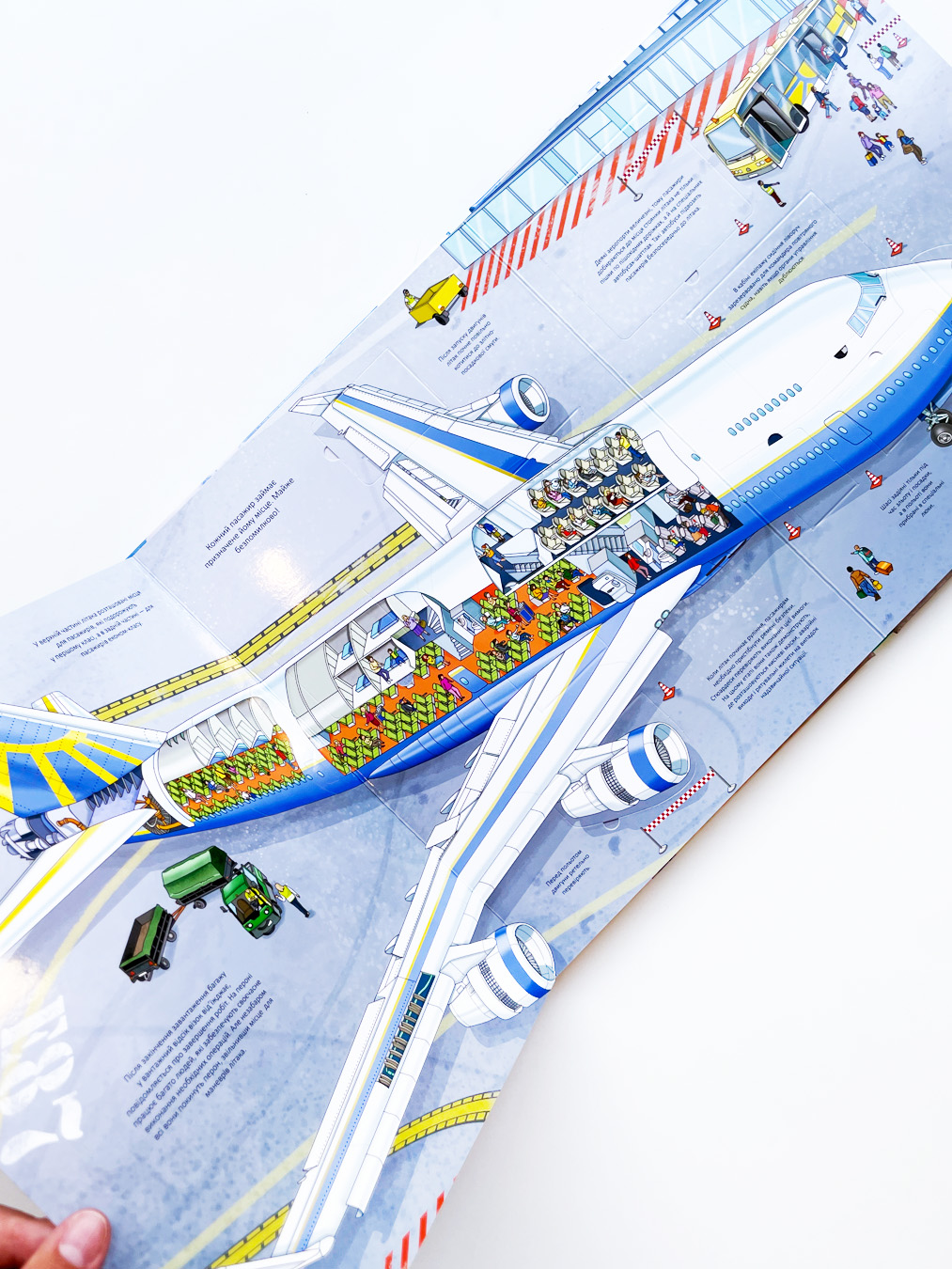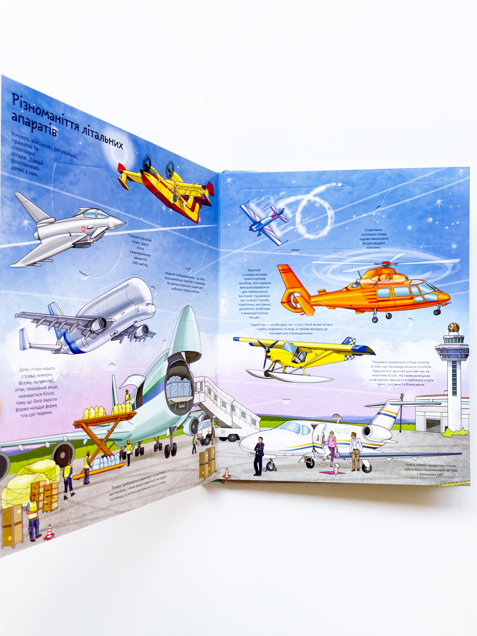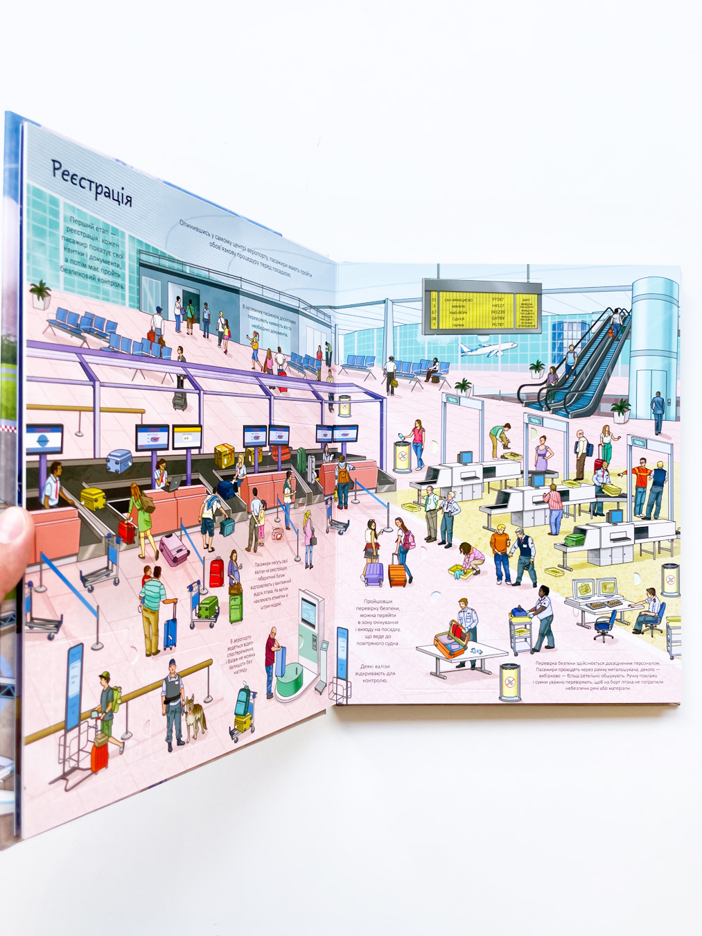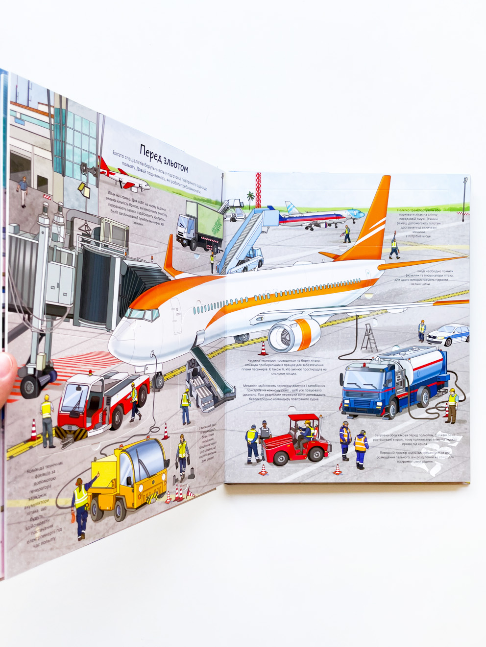 Любителі техніки будуть просто в захваті, бо ж у книжці стільки різноманітних машин, що годі полічити. Про найцікавіші з них, а також про роботу аеропорту юні мандрівники дізнаються зі сторінок нової подарункової енциклопедії «Аеропорт». 70 віконець із «секретами», величезна сторінка-розгортка й чудові ілюстрації роблять книгу напрочуд захопливою та цікавою для дошкільнят і школярів.