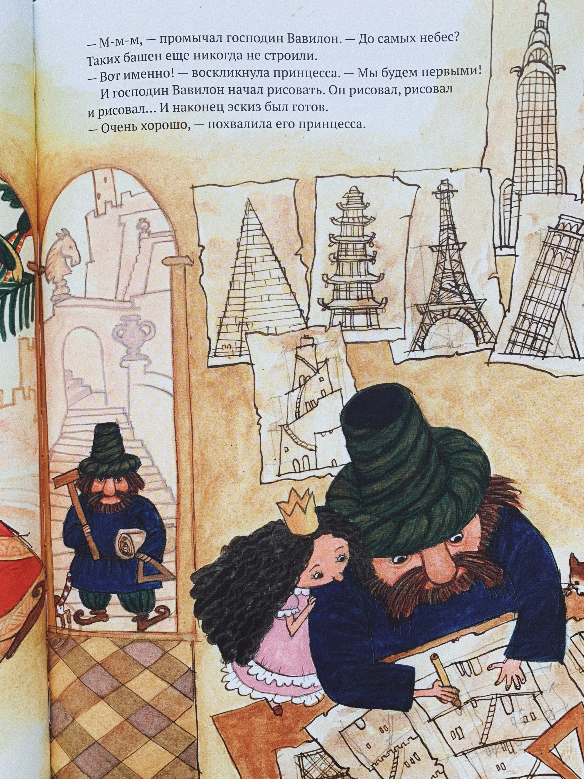 Король совсем сбился с ног, чтобы развеселить свою дочку, но принцесса все равно скучает целыми днями: музыканты играют занудную музыку, повар готовит надоевшую еду, а танцоры всегда танцуют один и тот же танец. И тогда король приказал господину Вавилону созвать со всего мира лучших ремесленников и построить самую высокую в мире башню.