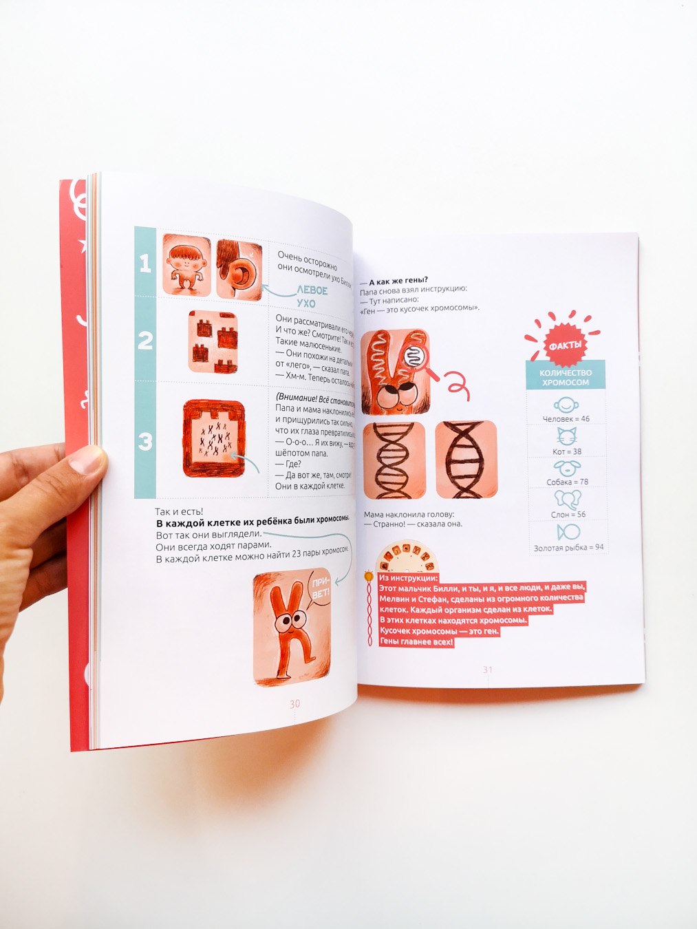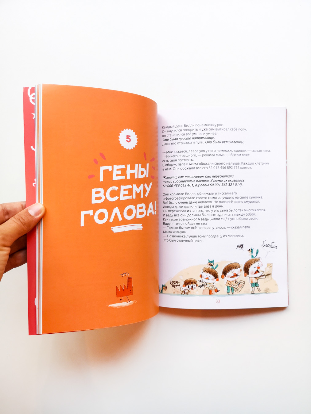 Эта книга расскажет тебе о мальчике Билли и о его генах. Гены — это крошечные частички твоего организма. Каждый ребёнок получает их от папы и мамы. Гены есть повсюду: у тебя в слюне, в волосах, в поте, в пальцах на ногах, во рту, внутри и снаружи. Повсюду! Голубые или карие у тебя глаза? Какой формы твои ладошки? Быстро ли ты бегаешь? Любишь ли ты шоколад? Да что ни возьми — всё это решают твои гены!