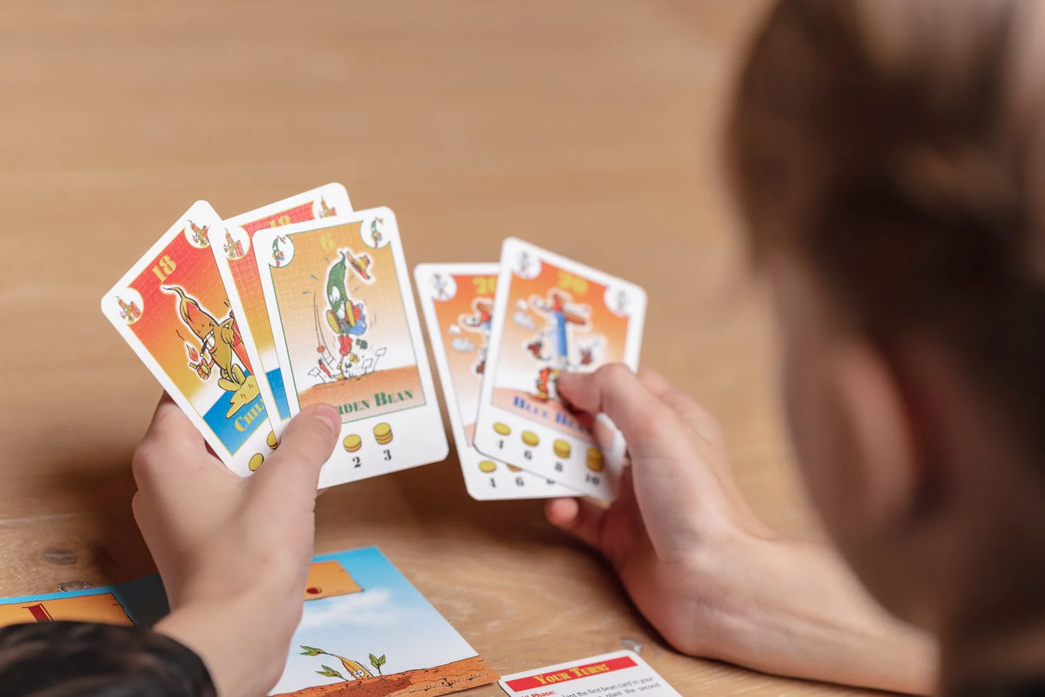 Bohnanza — весёлая карточная игра, где вы выращиваете бобы, собираете урожай и активно торгуетесь с другими игроками, чтобы заработать больше всех монет. Отлично подойдёт для компании взрослых или детей постарше, которые любят живое общение и немного стратегий.