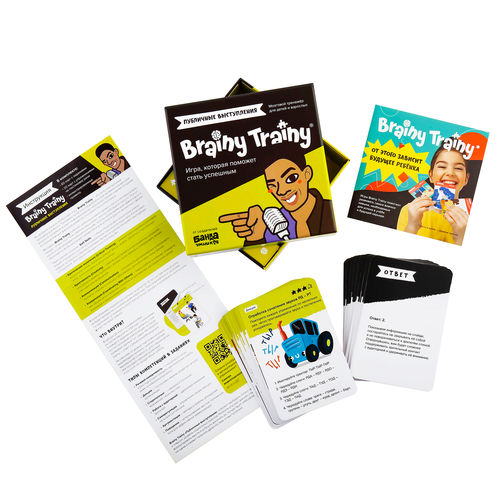 Brainy Trainy «Публичные выступления» — это уникальный тренажёр, который поможет пробудить талант оратора. Ребёнок улучшит дикцию, научится формулировать мысли и успешно доносить их, почувствует себя уверенно на сцене и сможет получать удовольствие от выступлений.