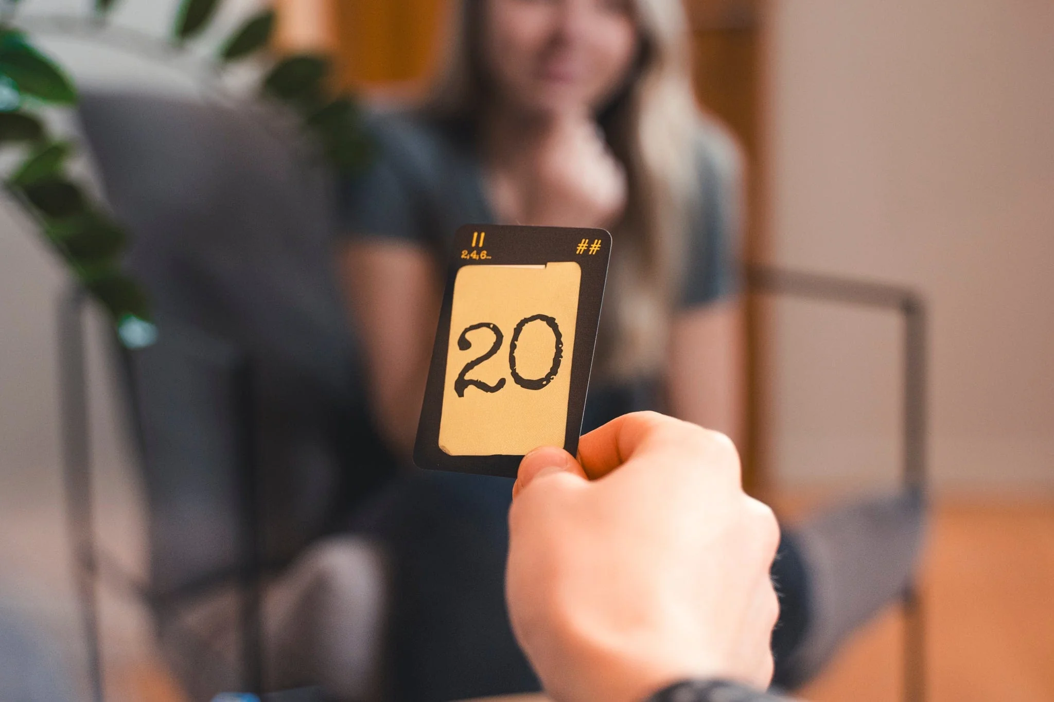 В игре «Deductio» у каждого игрока есть карта с числом от 1 до 20. В свой ход игрок должен либо честно взять одну карту-подсказку, которая описывает его секретное число (например, карту, говорящую, что у тебя нет числа от 1 до 5), либо попытаться угадать секретное число другого игрока. Правильная догадка принесет тебе очко, а неправильная заставит взять две карты-подсказки, которые помогут другим игрокам разгадать твое секретное число.