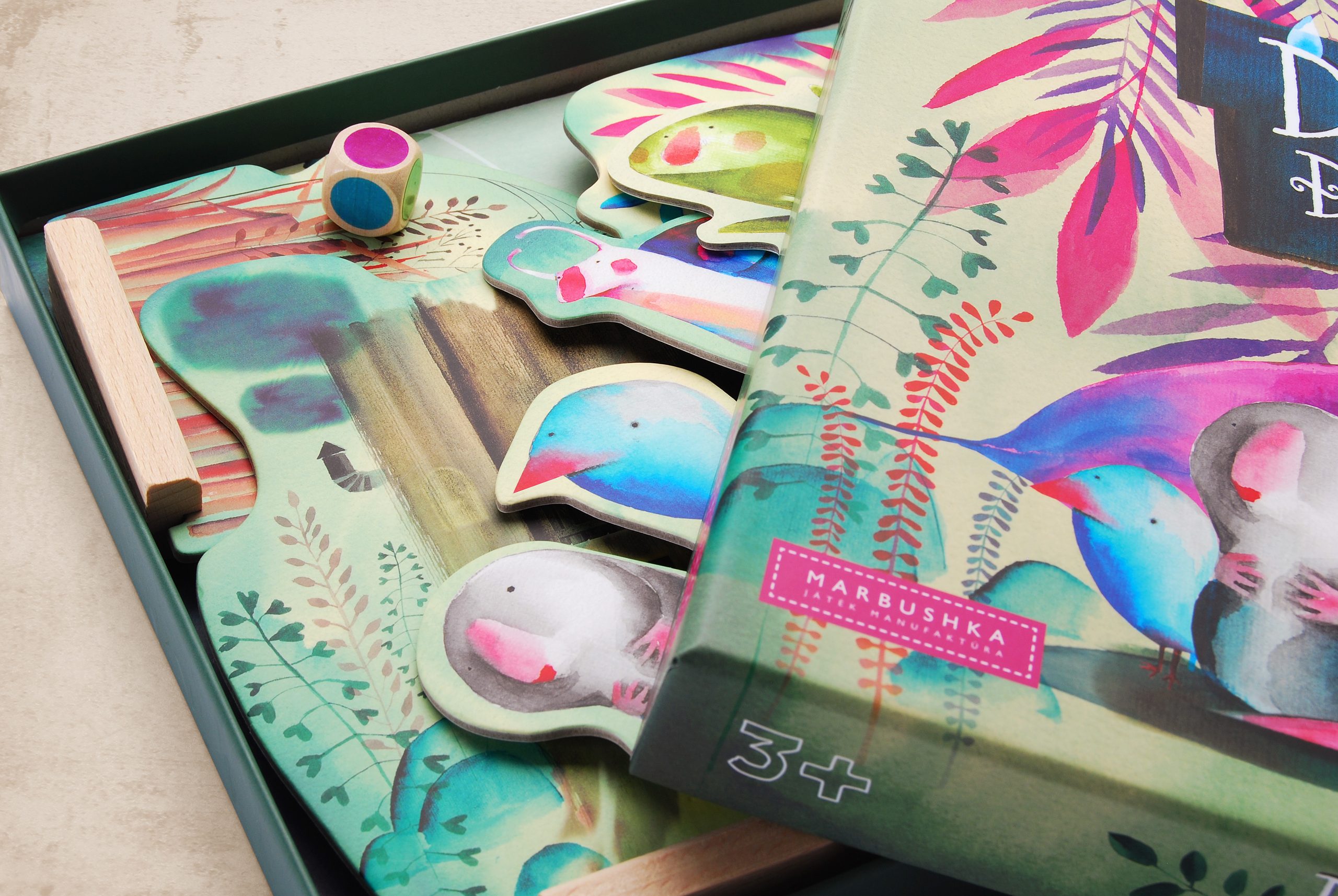 Эта игра – обычная ходилка. На кубике не точки, которые нужно считать, а цвета. Ставим фигурки в начале дорожки, первым ходит самый младший. Ходим по цветам, которые выпали на кубике, укрываемся в траве и стараемся добежать первыми до домика. Кто первы добежал – тот и победитель!