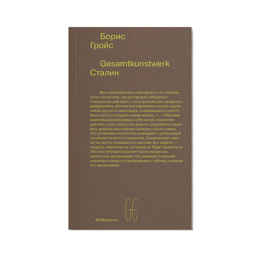 Gesamtkunstwerk Сталин (1988) — одно из самых известных исследований Гройса, лаконично и убедительно характеризующее сложную историческую преемственность русского авангарда, социалистического реализма и позднесоветского постмодернистского искусства.