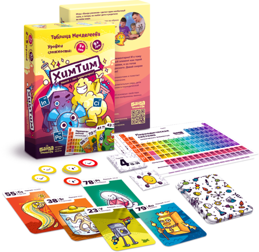 Игра «ХимТим» станет главным помощником ребёнка в подготовке к изучению химии в школе. Каждый химический элемент — яркий герой со своим характером и суперспособностями, поэтому его свойства и положение в периодической таблице так легко запомнить!