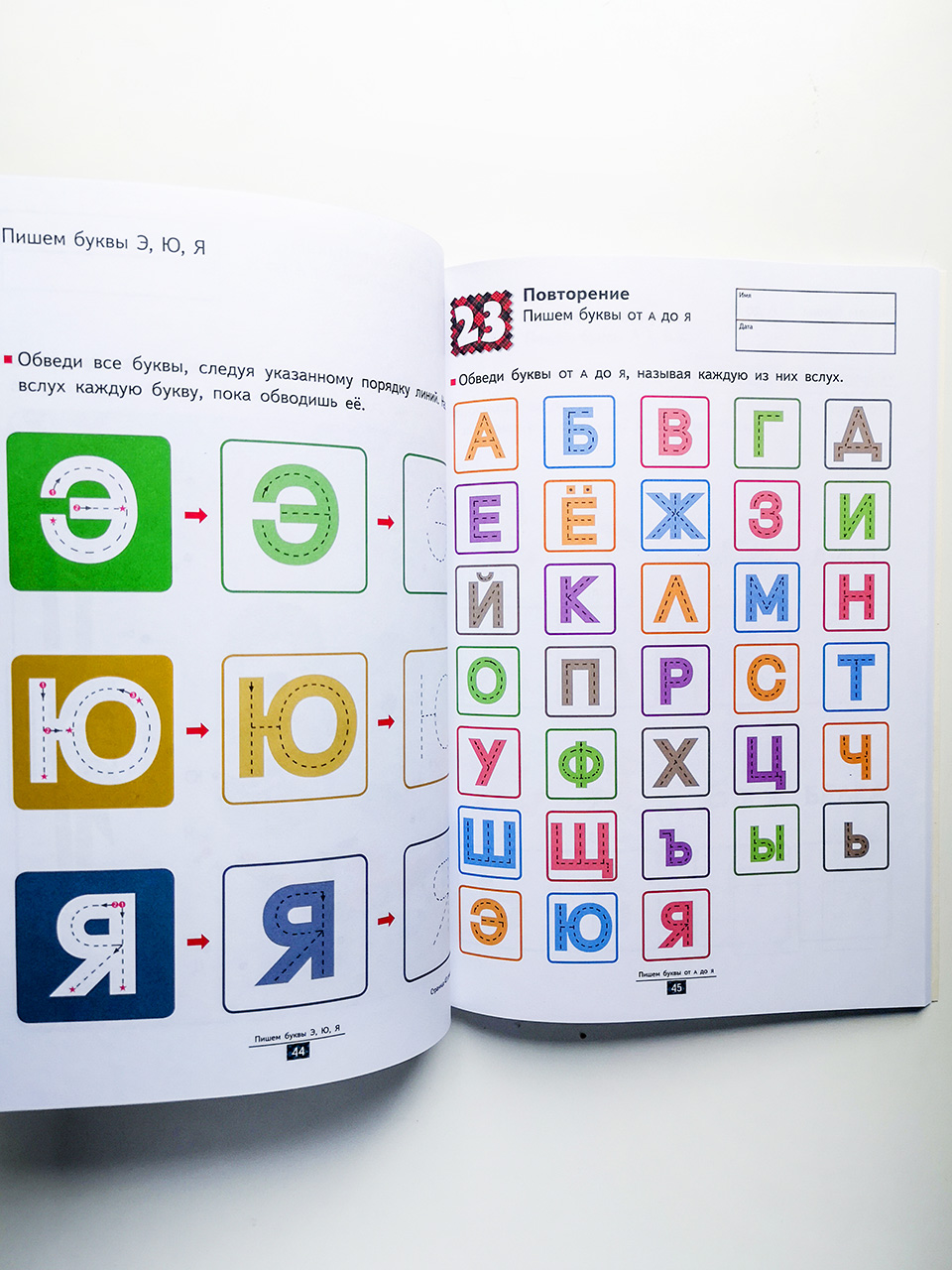 Если ваш ребёнок ещё только начинает учиться писать печатные буквы, то рекомендуем начать с тетради Учимся писать печатные буквы русского алфавита.