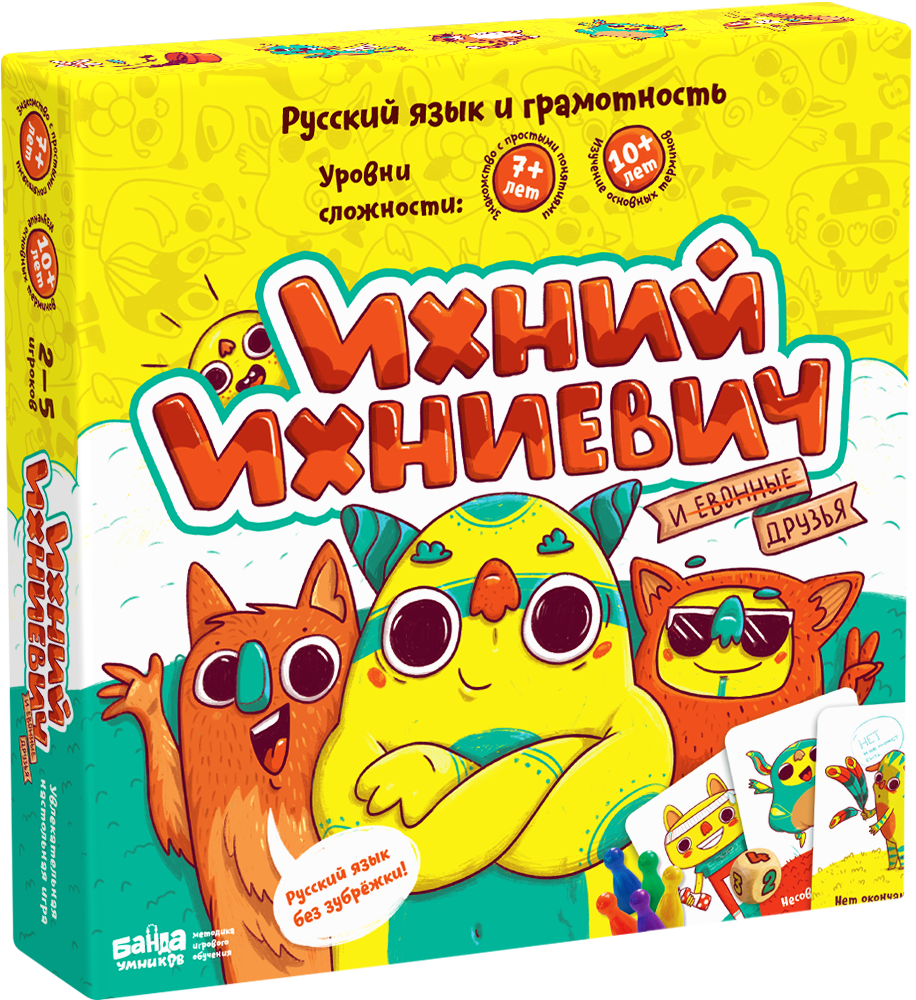 Русский язык учить тяжело. Это неудивительно: столько разных правил, скучные учебники! «Ихний Ихниевич» — это уникальная настольная игра, которая помогает понять и запомнить самые важные термины из курса русского языка с 1 по 6 классы. Ведь играть намного интереснее, чем читать очередной параграф 🙂