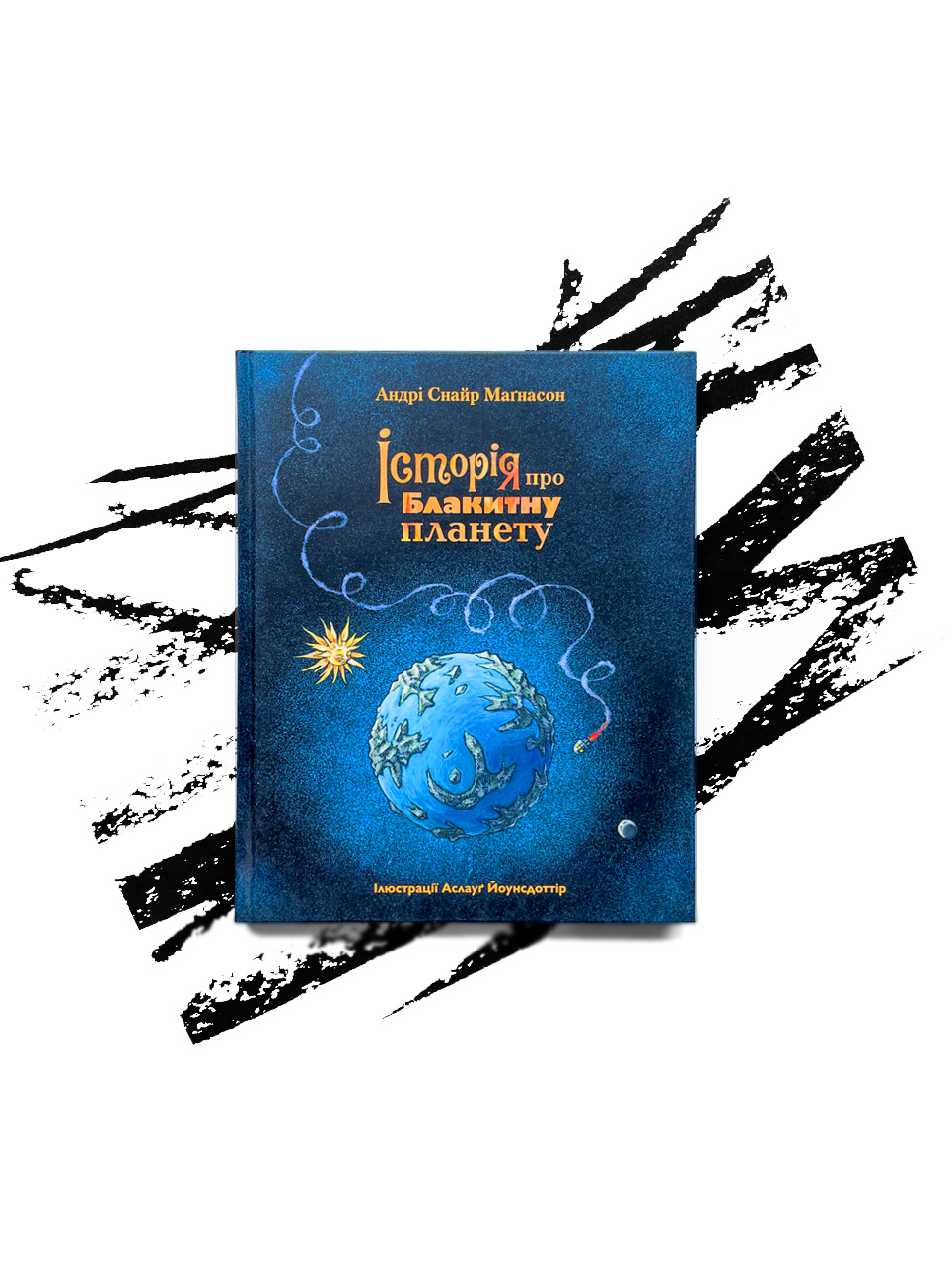«Історія про блакитну планету» — це захоплива пригодницька книга Андрі Снайра Маґнассона, лауреата багатьох нагород. У далекому закутку космосу, на Блакитній планеті, живе сила-силенна дітлахів, які ніколи не підростають. Вони дбають самі про себе і насолоджуються життям, аж поки якось один непроханий гість не висаджується з грюкотом у них на березі. І тут починається чарівна пригода, яка веде дітей через темні ліси, глибокі долини та блакитне небо. Дитяча книга “Історія про Блакитну планету” у світі 1999 року ця книга виграла Ісландську літературну премію, а за десять років була обрана найкращою книгою, що колись номінувалася на цю нагороду. П’єси за її мотивами дуже популярні як у Національному ісландському, так і у Рейк’явікському міському театрах, а ілюстрації Аслауґ Йоунсдоттір були номіновані до почесного списку Міжнародної ради з дитячої та юнацької книги. «Історія про блакитну планету» була опублікована 28 мовами й отримала багато міжнародних премій, зокрема Дитячо-юнацьку літературну премію Північно-Західної Ради і почесну відзнаку премії імені Януша Корчака.