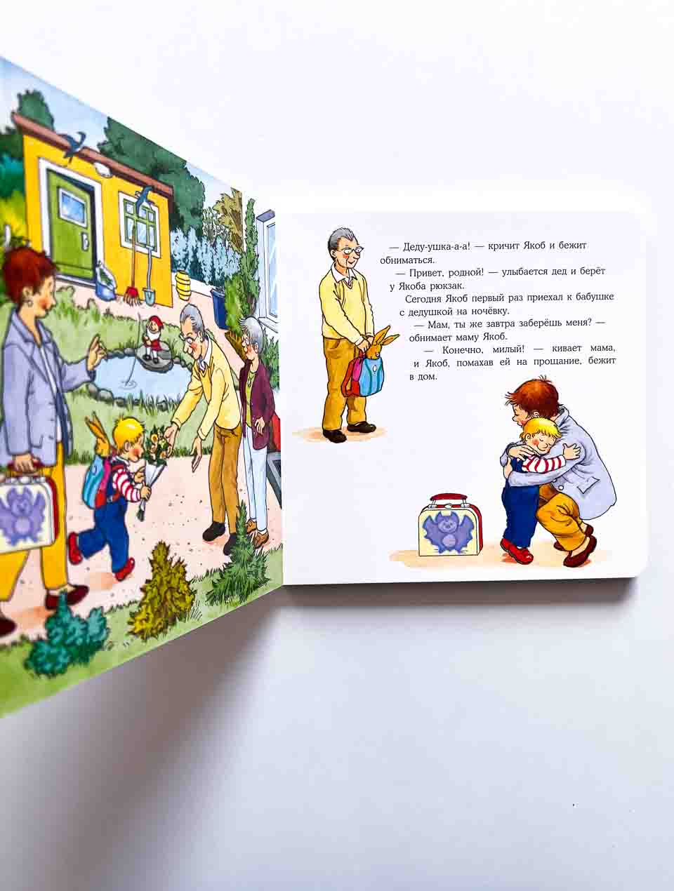 Малышам очень важно знать, что всё идёт по плану, а родители и другие близкие люди готовы позаботиться о них. Ночёвка у бабушки с дедушкой может стать отличным приключением, если подготовиться к ней заранее. Например, так, как это сделала мама Якоба: дала ему с собой любимую игрушку, привычную зубную щётку и предупредила, когда вернётся за ним. А Якоб ещё дома придумал, что будет делать у бабушки с дедушкой.
