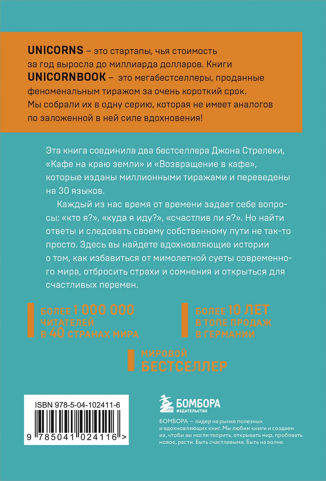 После долгого блуждания в темноте и неизвестности все, что вам нужно — зайти в уютное кафе, выбрать столик и раскрыть меню. Вместе с главным героем Джоном вы пройдете короткий, но полный удивительных открытий путь — путь к самому себе. Каждому из нас необходимо хоть раз остановиться посреди суеты и тревог современного мира и ответить на главный вопрос: «Почему я здесь?» Понять, что действительно значимо, увидеть цель своей жизни в дымке будущего и двигаться к ней, каждый день ощущая себя счастливым. Эта книга — мировой бестселлер, переведенный на 30 языков — вдохновит вас на перемены, о которых сегодня вы можете только мечтать.