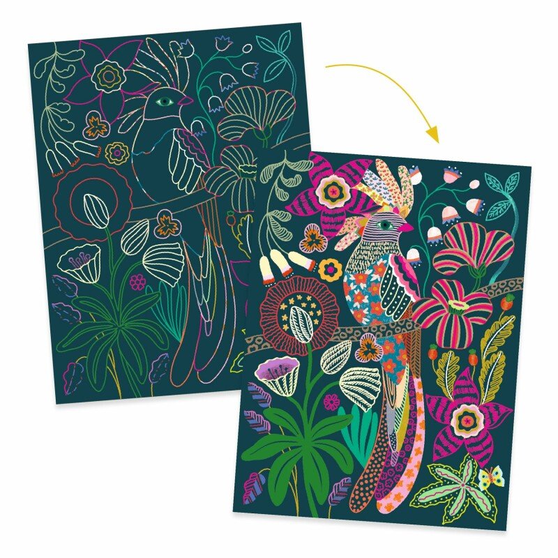 Набор для творчества способствует развитию креативных способностей, воображения и эстетического вкуса с ранних лет. Ребёнку нужно “раскрасить” изображения, сцарапав разноцветный слой картинки палочкой-стилосом. Такое времяпрепровождения точно понравится юным художникам.