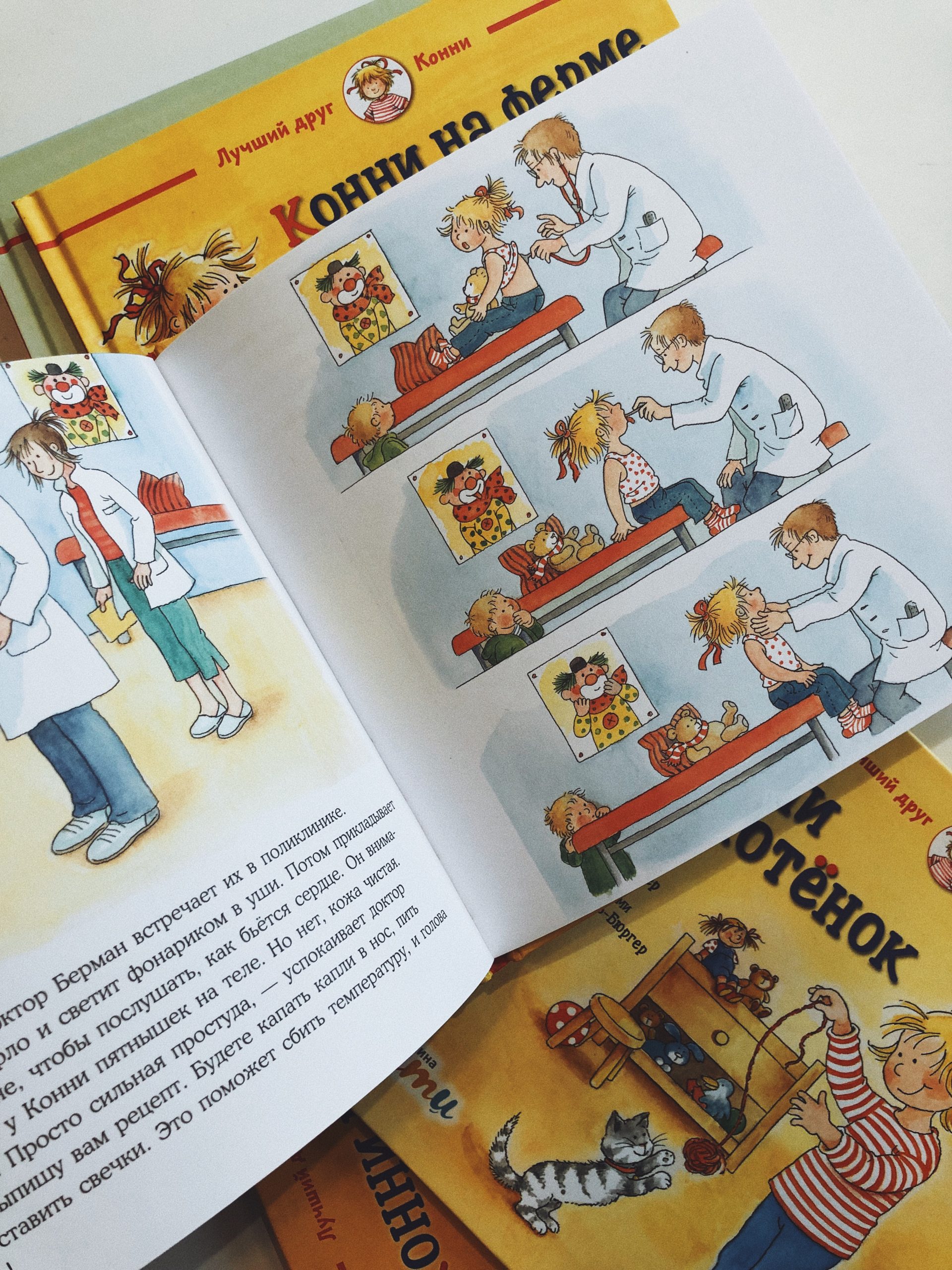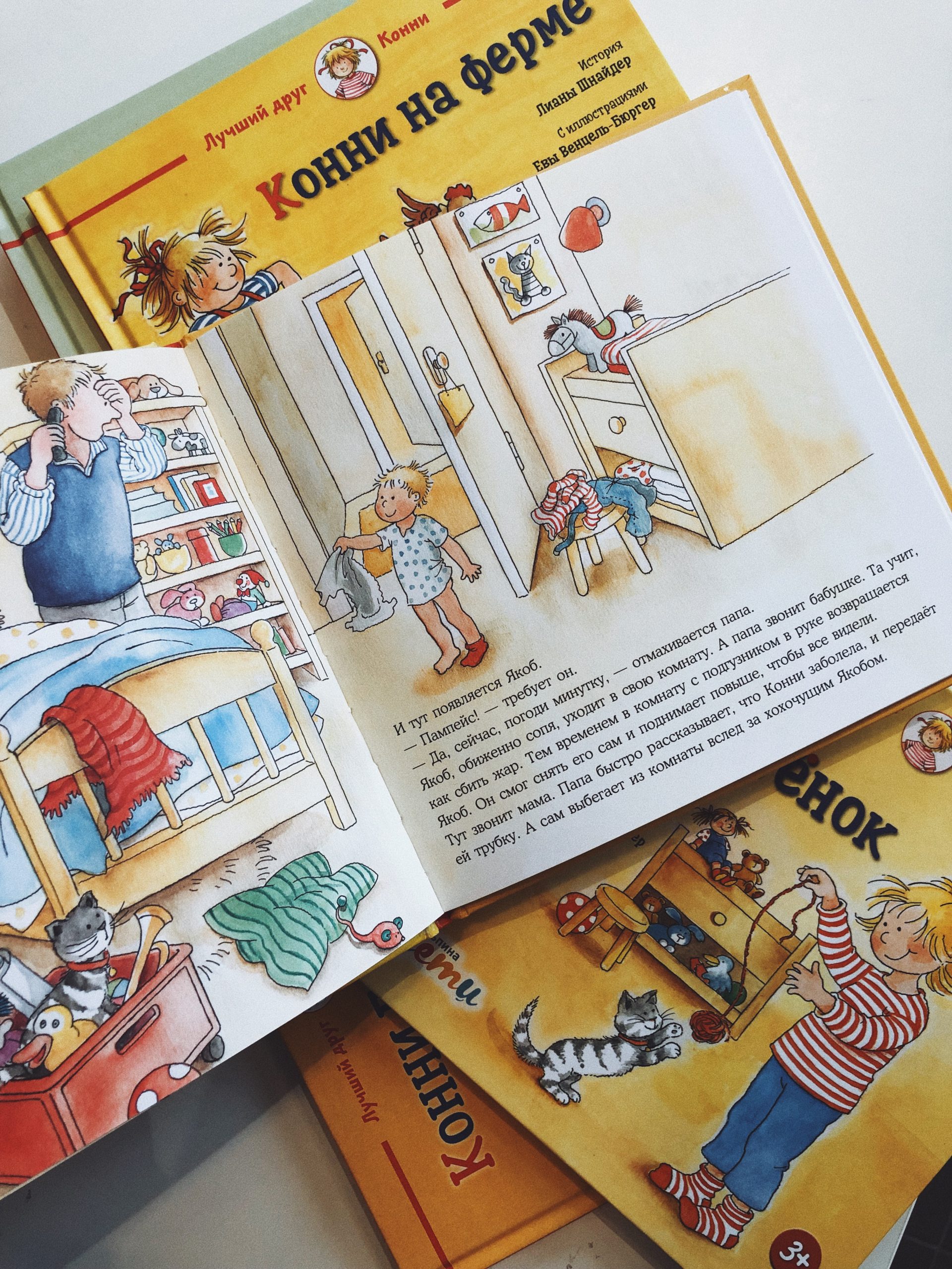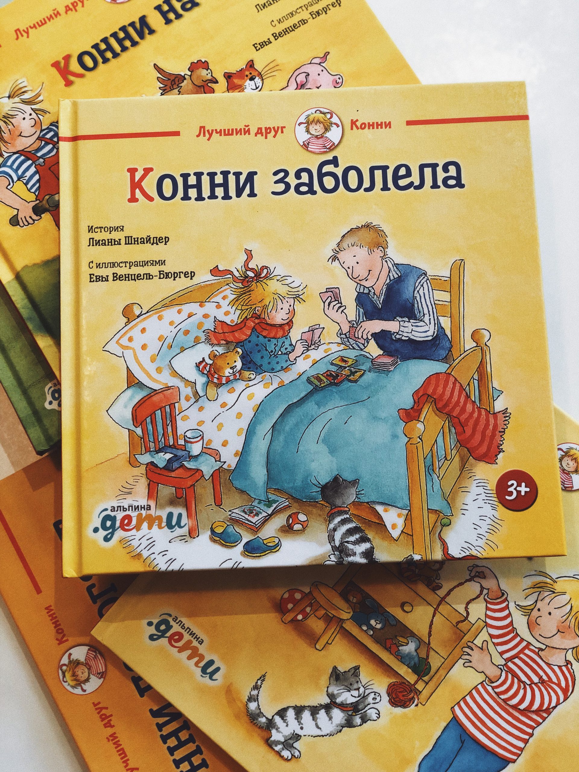 Даже самый крепкий и здоровый малыш время от времени болеет. Вот и у Конни мама уехала в командировку, дома с Конни и Якобом остался один папа, а Конни как назло разболелась. Горло саднит, нос заложен, и даже поднялась температура. Справится ли папа без мамы? Конечно! Даже соблюдать постельный режим и пить все лекарства, которые выпишет доктор, с ним будет совсем не скучно. И к возвращению мамы у них все будет хорошо.