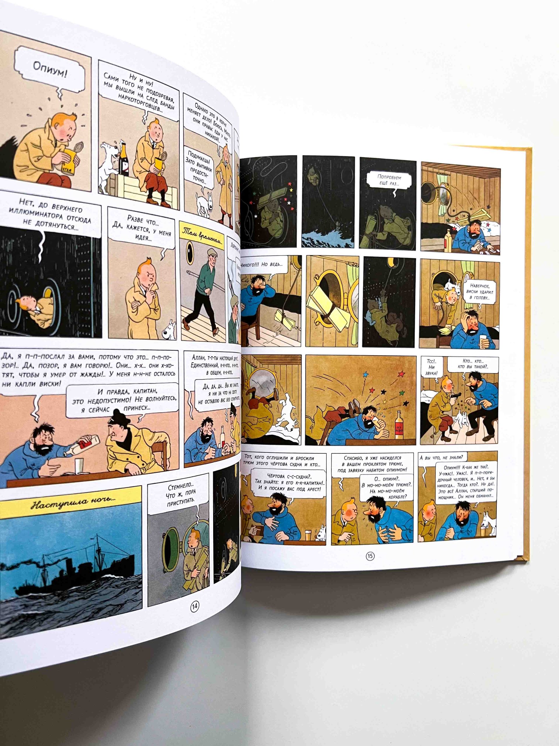 Очередные захватывающие приключения молодого репортёра Тинтина не заставили себя долго ждать. Иначе и быть не могло – у этого юноши поразительный нюх на всякого рода авантюры. Погони, перестрелки, опасные путешествия и даже долгий, изнурительный переход пустыни Сахары! Отважный Тинтин ни перед чем не остановится, чтобы обезвредить преступную группировку, которая занимается распространением опиума, спрятав его в консервных банках из-под краба. Но противник слишком хитёр и коварен. Что же предпримет Тинтин на этот раз?