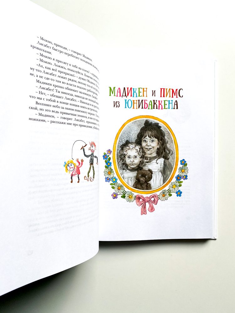 Мадикен живёт в большом красном доме возле речки. Лучшего места, чем это, на всём свете не сыскать, считает она. Ещё там живут мама и папа, помощница Альва и малышка Пимс, которая везде и всюду следует за своей старшей сестрой. Куда одна, туда и другая. Вместе им всегда весело. Да и как может быть иначе! Ведь здесь столько всего интересного: можно купаться, качаться на качелях, играть в крокет, поливать огород и поить молоком ёжика!