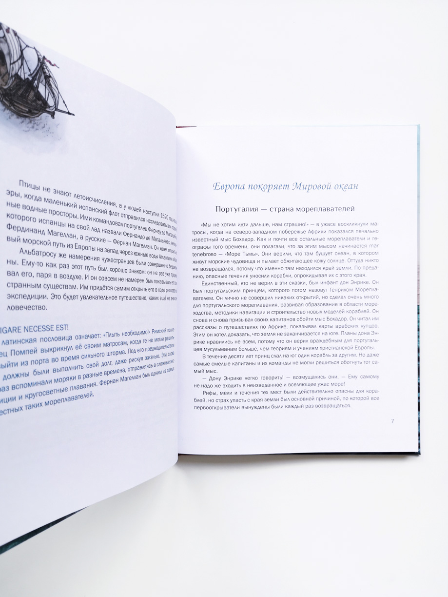 В 1519 году флотилия из пяти кораблей, на борту которых находилось 265 моряков, отправилась от атлантического побережья Испании к легендарным «Островам пряностей». Её капитаном был португалец Фернан Магеллан — блестящий мореплаватель и целеустремлённый исследователь. 6 сентября 1522 года одинокое судно, изъеденное червями, возвратилось на родину. На борту находилось 18 измождённых матросов. Магеллана среди них не было… Обычная исследовательская экспедиция Магеллана превратилась в грандиозное кругосветное плавание длиной в три года. Эта книга отправляет нас в большое путешествие, полное опасных приключений и великих открытий!