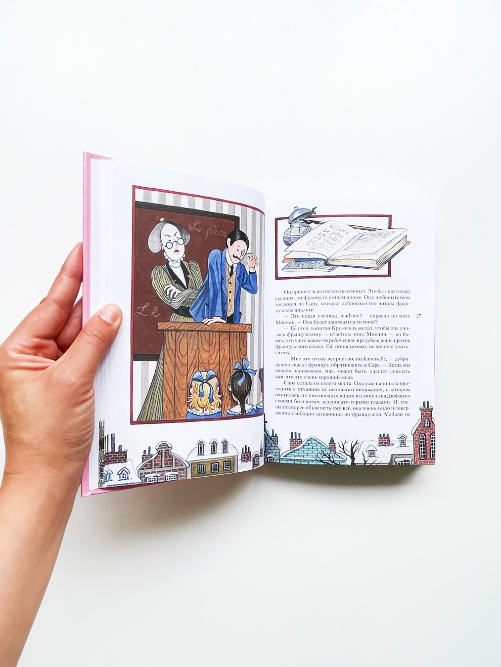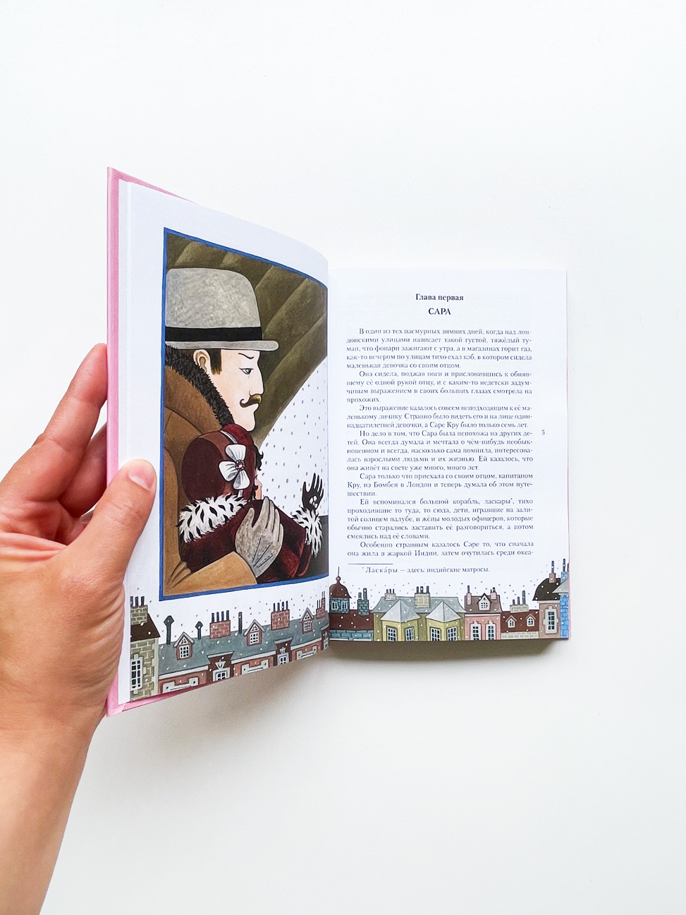 Героиня повести известной американской писательницы Фрэнсис Бёрнетт (1849-1924) Сара Кру – девочка из богатой семьи. Для неё покупают всё самое лучшее – самые лучшие игрушки, самую красивую одежду, самые вкусные лакомства. Но внезапно роскошная жизнь маленькой Сары заканчивается, и начинается новая, полная страданий и лишений. Но Сара Кру – благородная девочка с добрым и любящим сердцем – мужественно и терпеливо справляется с трудностями, выпавшими на её долю.