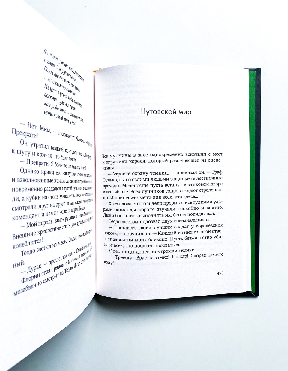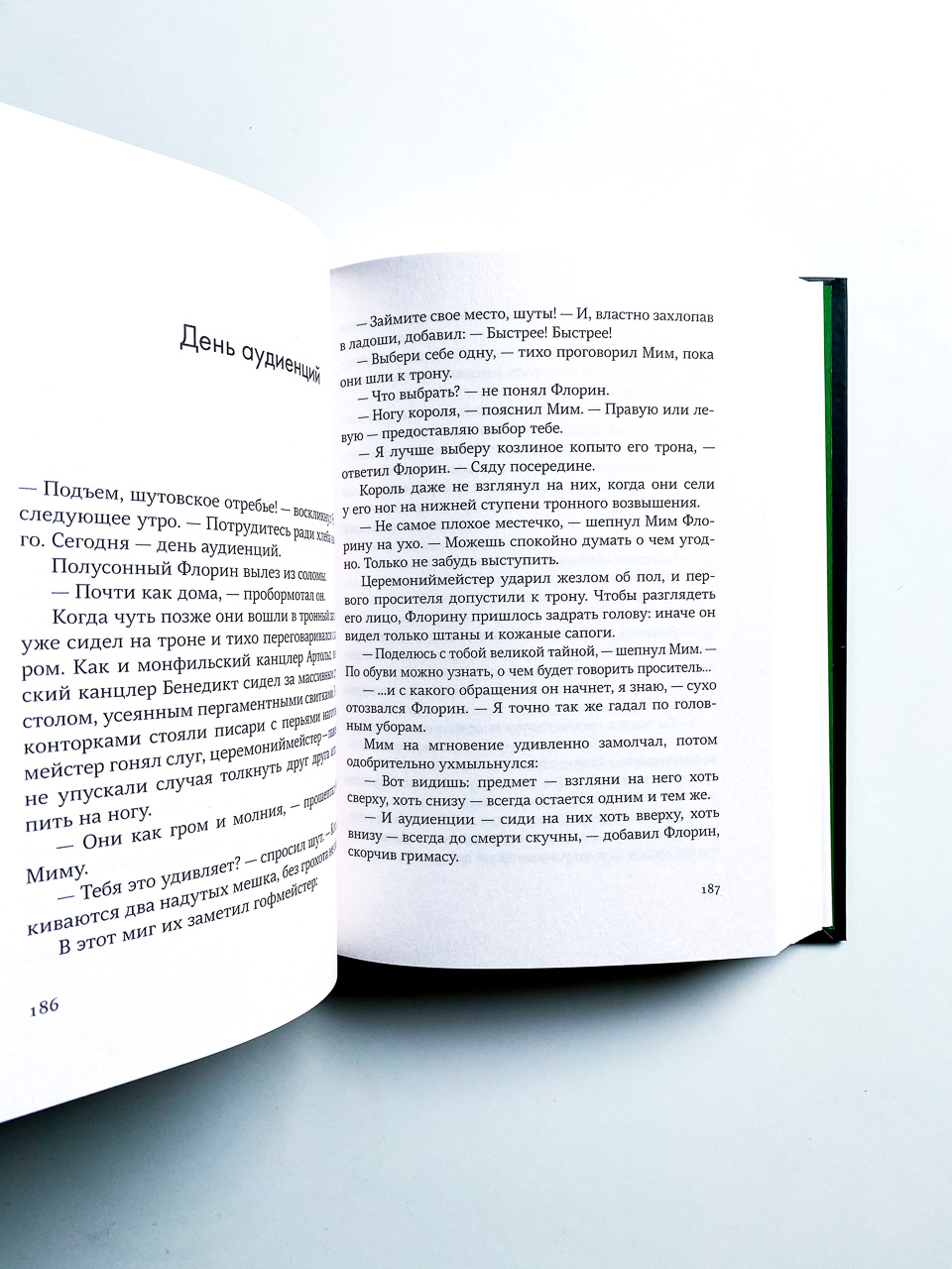 Колесо фортуны вращается неумолимо: вчера ты был наследник короля, а сегодня — придворный шут в колпаке с ослиными ушами, в уродливом наряде, пляшешь и балагуришь, потешая мстительного короля. Двенадцатилетнего Флорина, наследного принца королевства Монфиль, вместе с отцом заманили в ловушку и вместо торжеств по случаю заключения мира он оказался в Обезьяньей башне, в учениках шута Мима, самого необычного персонажа при дворе Винландии. Каждый день Флорин учится быть шутом, падая все ниже и ниже. Но только побывав на самом дне, когда отчаяние и унижение уже, казалось, разъели всю душу, можно найти в себе силы, обрести надежду и познать истинную цену жизни.