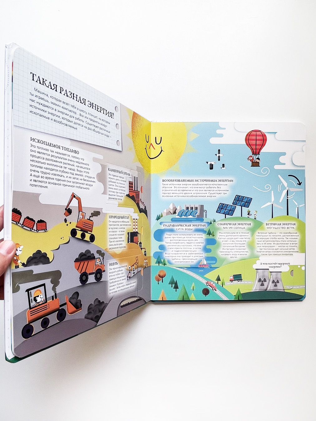 Познавательная энциклопедия, специально адаптированная для восприятия маленькими детьми, расскажет самое интересное о том, что общего у нашего дыхания и «дыхания» растений, почему бывают дожди, как люди придумали время и почему так важно заботиться о природе. А интерактивные элементы не дадут малышам заскучать!