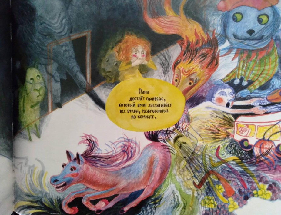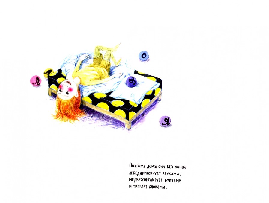 Мона Оляля живет в городе, где буквы на каждом шагу. Она обожает набивать ими карманы. Дома Мона без конца лебедирижирует звуками, медвежонглирует буквами и тиграет словами. А родители Моны очень заняты, им не нравятся разбросанные повсюду буквы. Потеряв терпение, папа Моны достает пылесос…