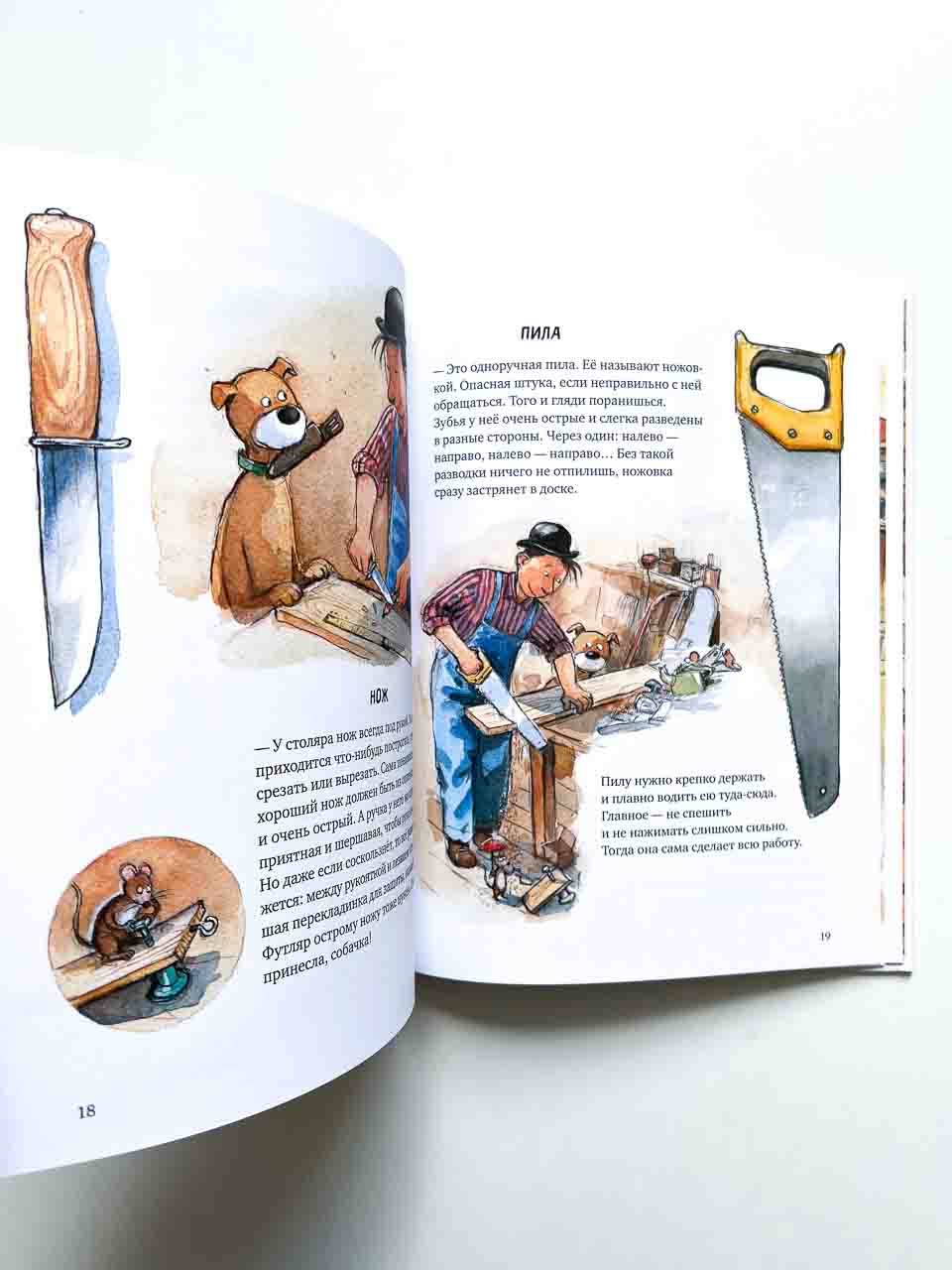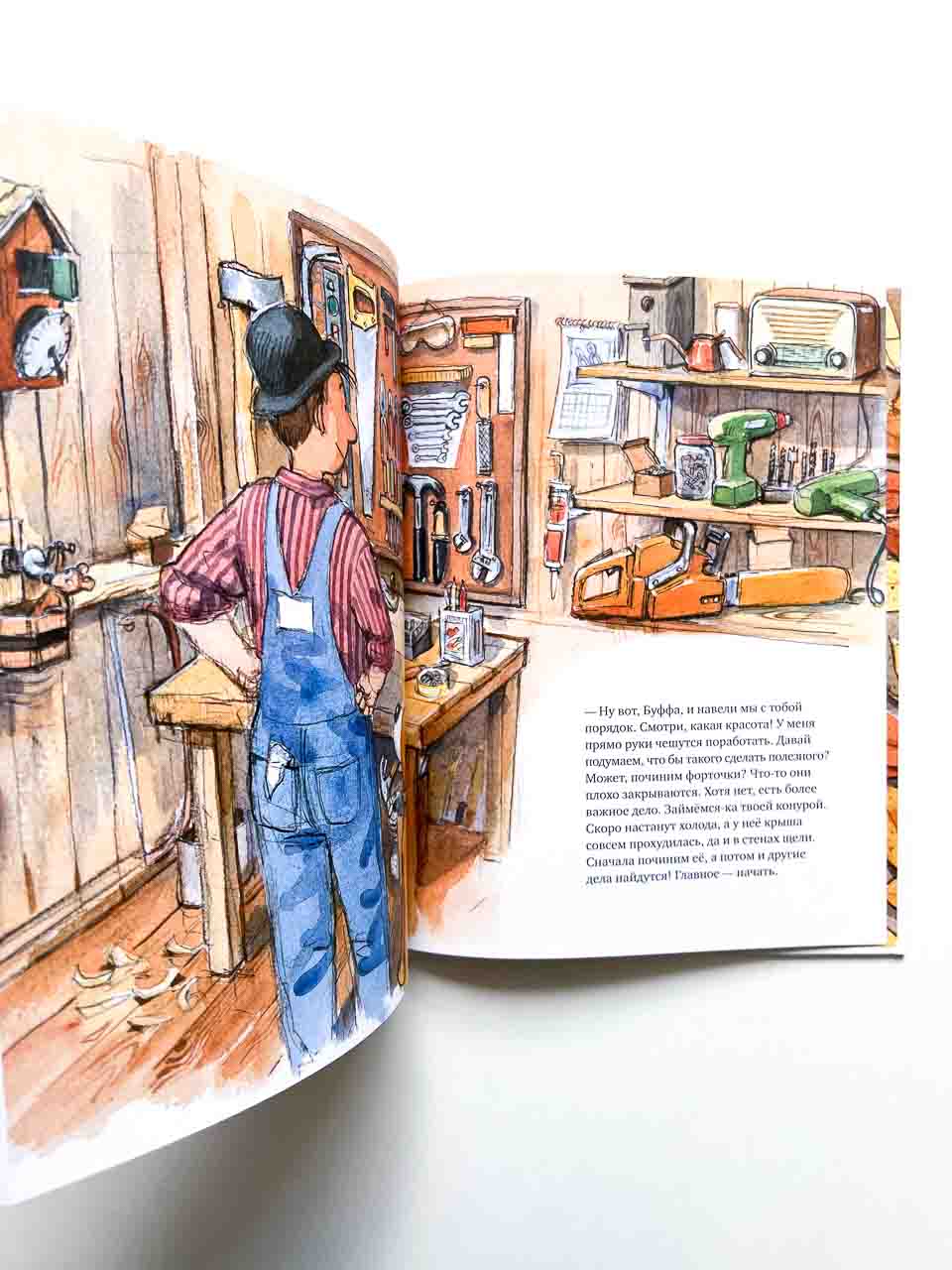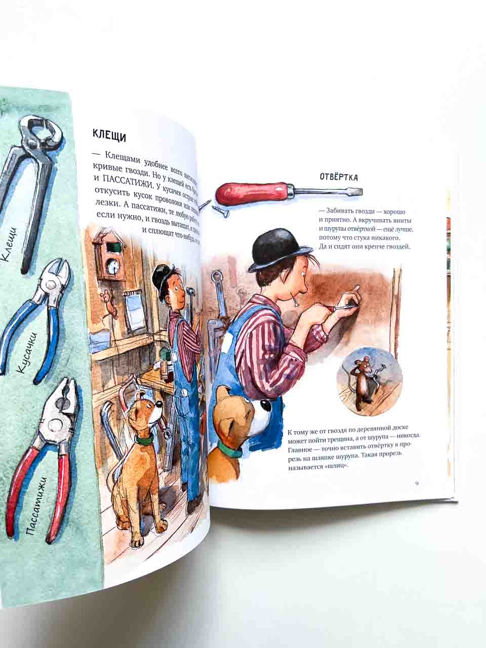Теперь у читателей появилась возможность побывать в святая святых – столярной мастерской Мулле Мека. Мулле как раз наводит в ней порядок, развешивает над верстаком инструменты, раскладывает по коробочкам шурупы и гвозди, а заодно рассказывает читателям о том, какой инструмент как называется, для чего нужен и как устроен. Каков принцип работы рычага и клина, что такое шлиц и гарда, для чего нужен ватерпас – обо всём этом можно узнать из книги “Мулле Мек в мастерской”.