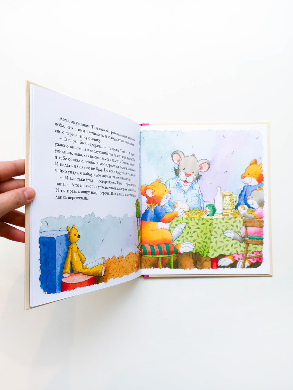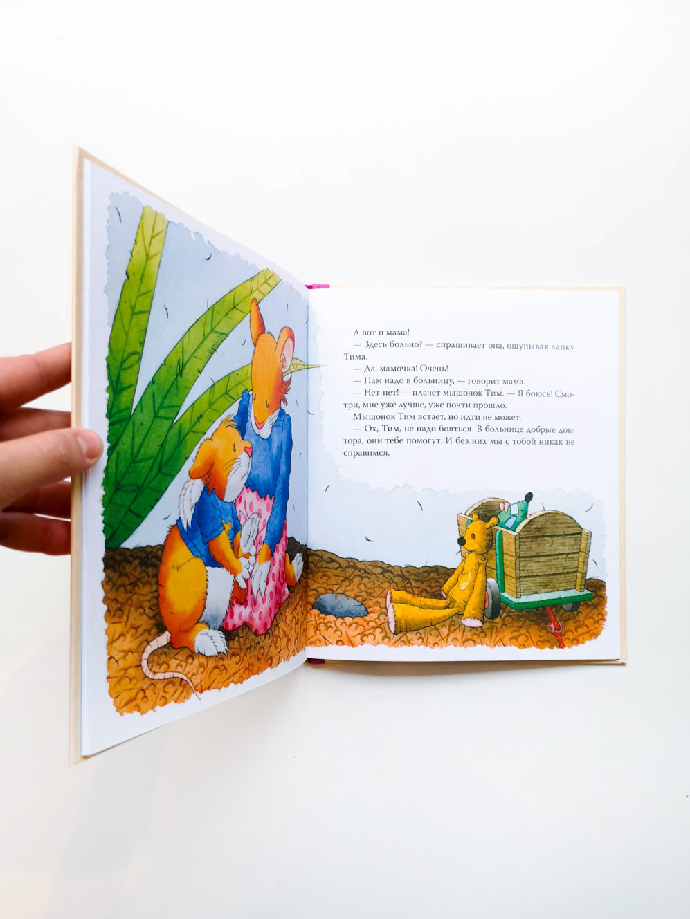 Мышонок Тим очень хочет выглядеть ловким и смелым в глазах друзей. Он карабкается высоко-высоко, но срывается и падает. Теперь Тиму надо к врачу, а он боится: вдруг в больнице ему сделают больно? Но вскоре сам увидит, что доктора добрые и они помогают малышам выздороветь.
