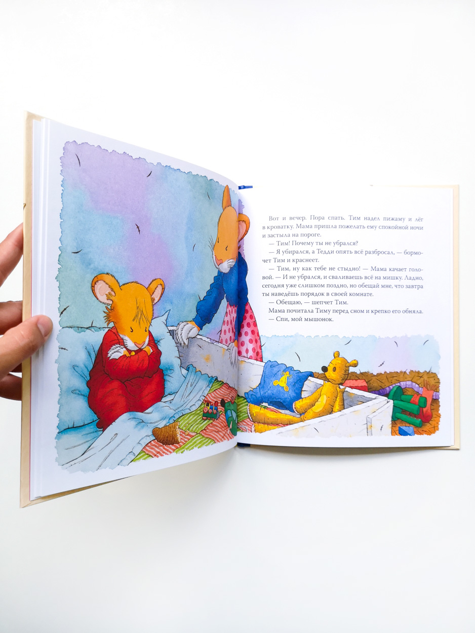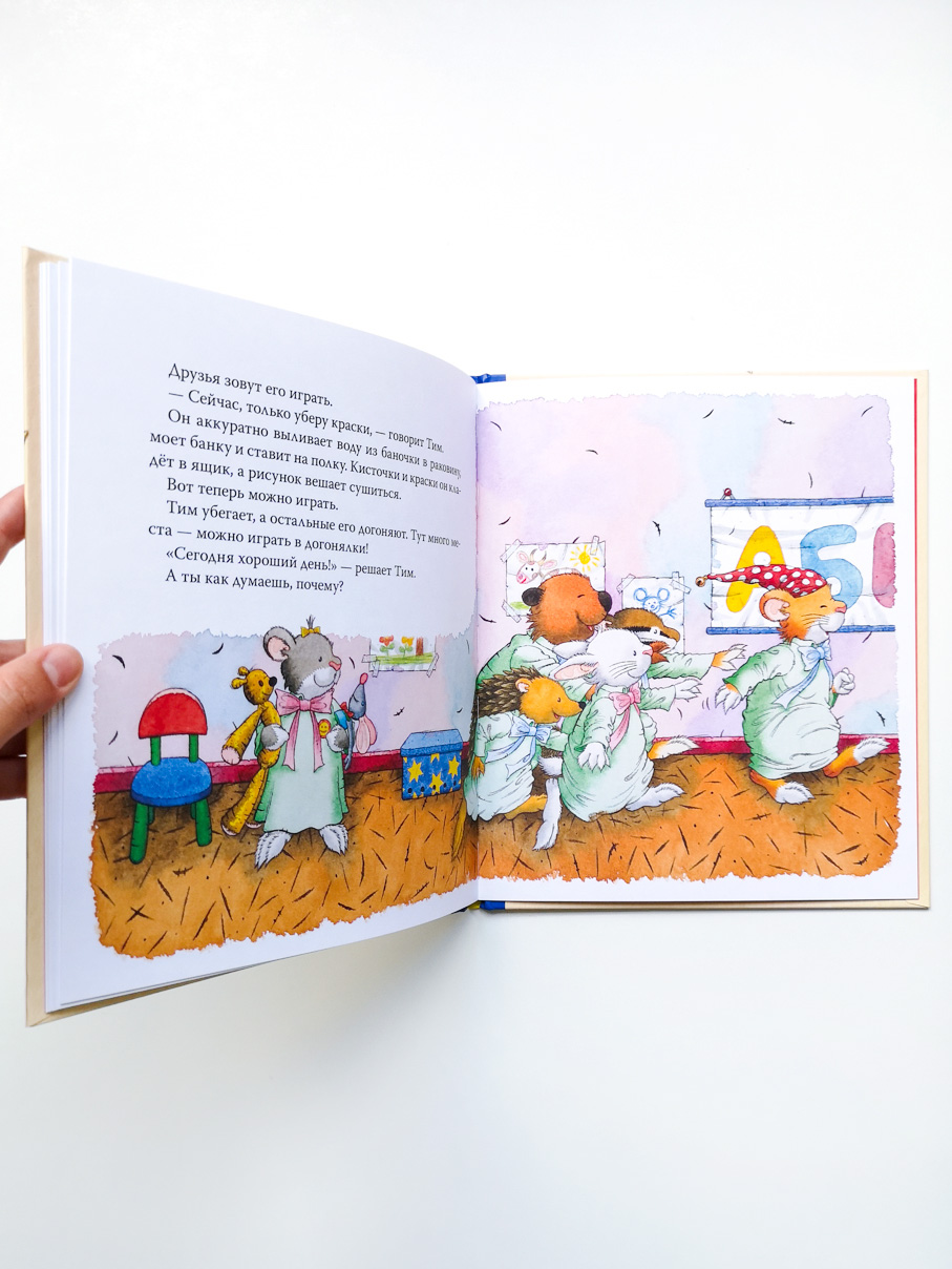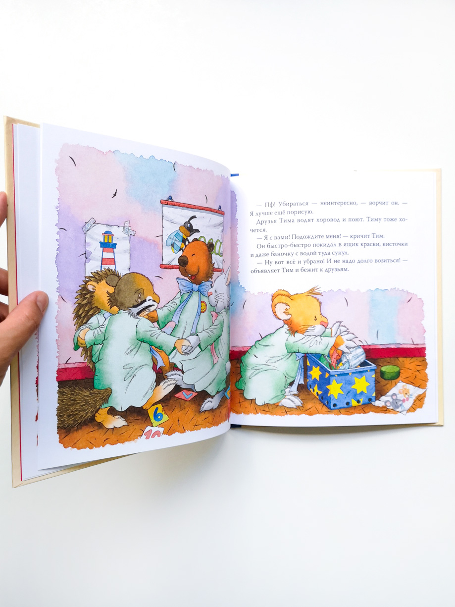 Мышонок Тим любит играть с друзьями и рисовать акварелью. А вот убирать игрушки и краски на место ему совсем не нравится! Но если наводить порядок кое-как, можно потерять в комнате любимую игрушку или испортить рисунок для папы. Вскоре Тим убедится, как это важно — вовремя убирать за собой и поддерживать порядок в комнате.