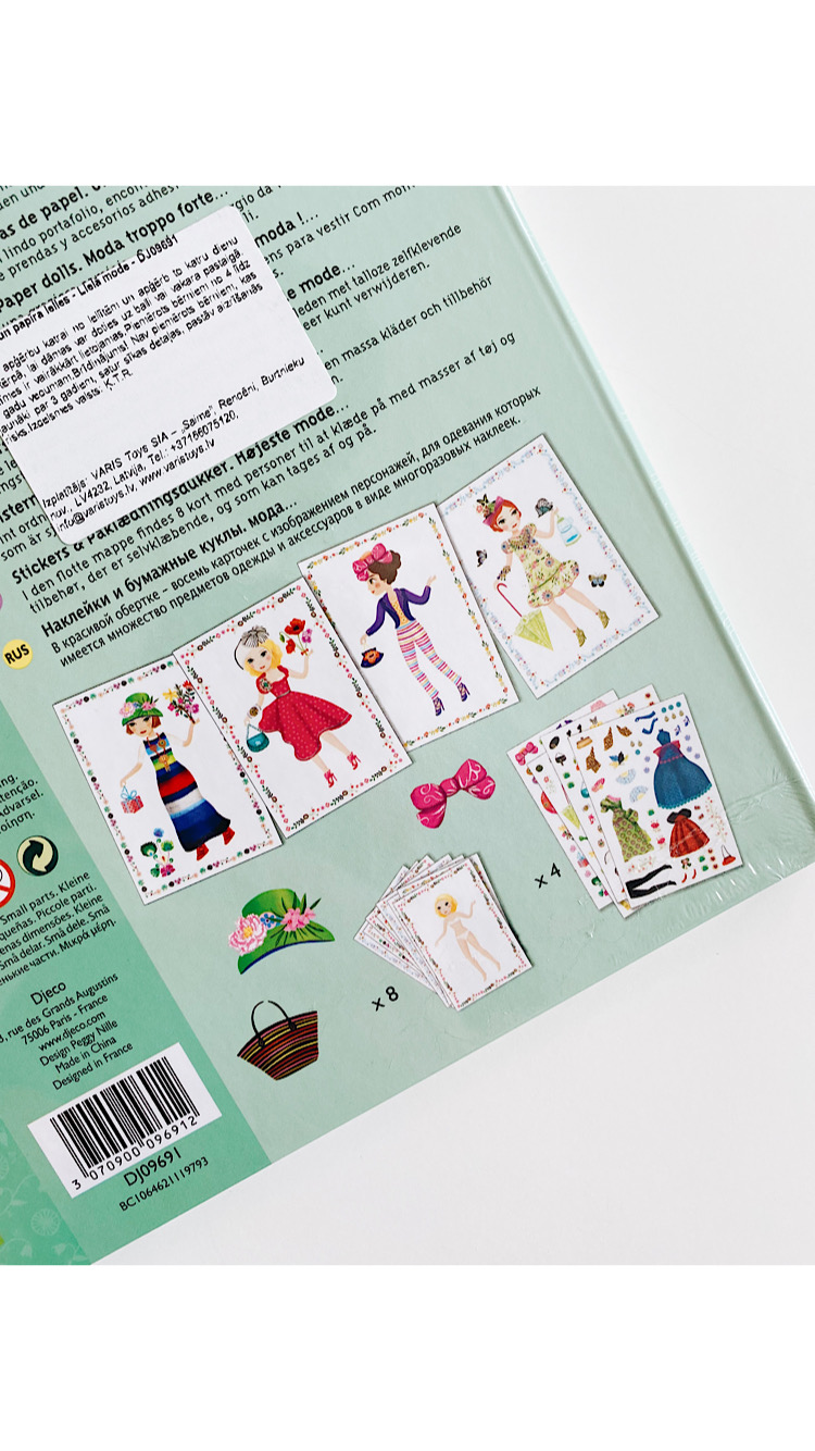 В составе набора: 4 листа с различной одеждой, 8 бумажных куколок, блокнот для хранения.
