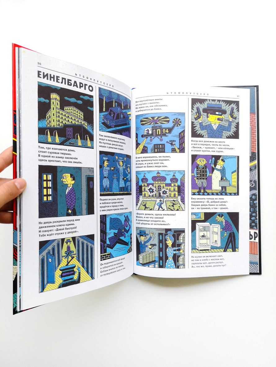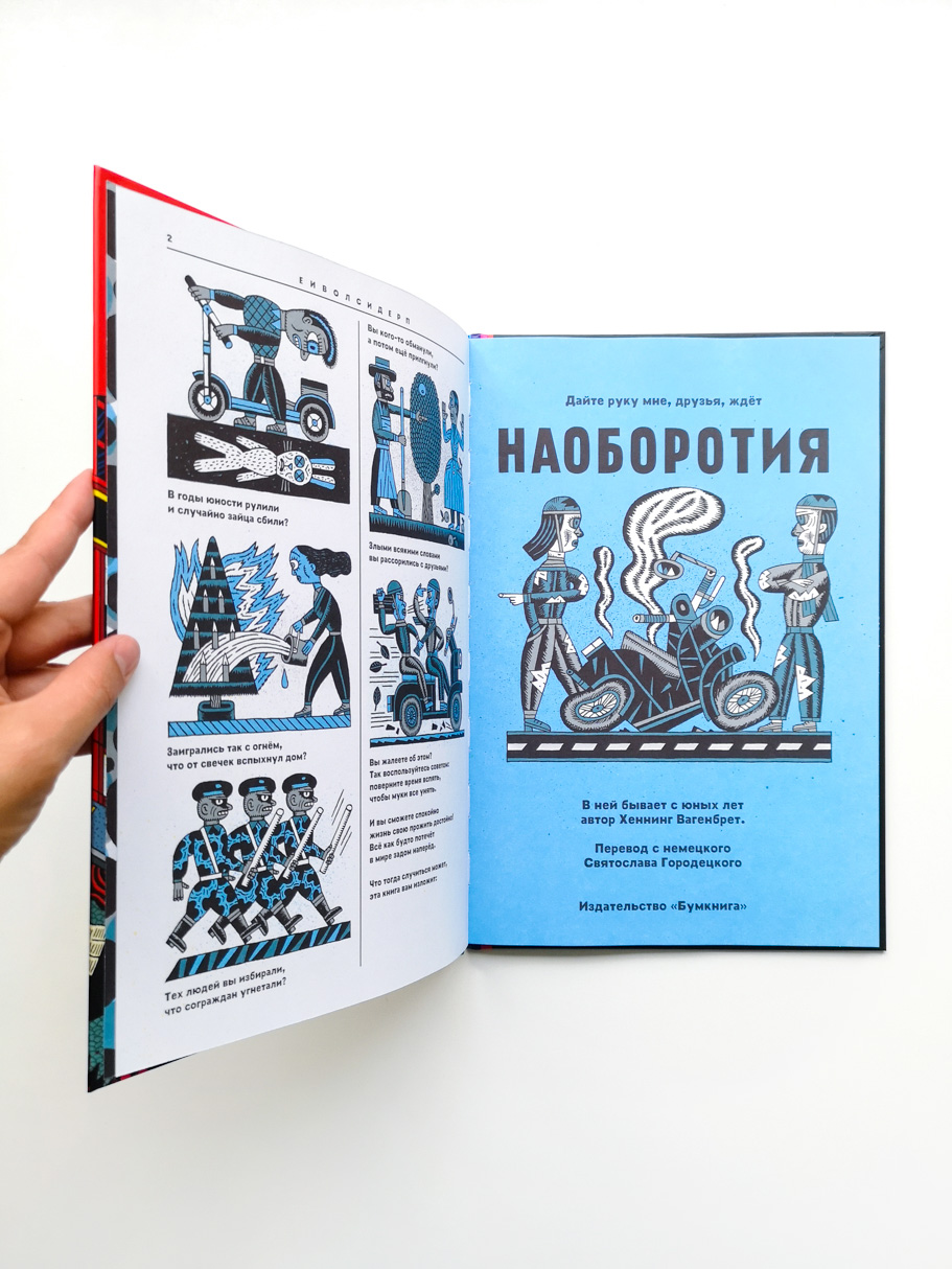 Хотелось ли вам повернуть время вспять, чтобы изменить решение, поступок или сказанные слова? Немецкий художник Хеннинг Вагенбрет даёт вам такой шанс и приглашает в Наоборотию! В этой стране всё идёт… наоборот: тонущие корабли как по волшебству выскакивают из волн и невредимыми возвращаются домой, футбольные матчи и шахматные турниры неизменно завершаются ничьей, а газеты пишут о том, что произойдёт только завтра. Не чудо ли? Вооружившись меткими стихами и красочными иллюстрациями, Хеннинг Вагенбрет переворачивает логику повседневной жизни и позволяет вдоволь насладиться абсурдной, но такой желанной реальностью.