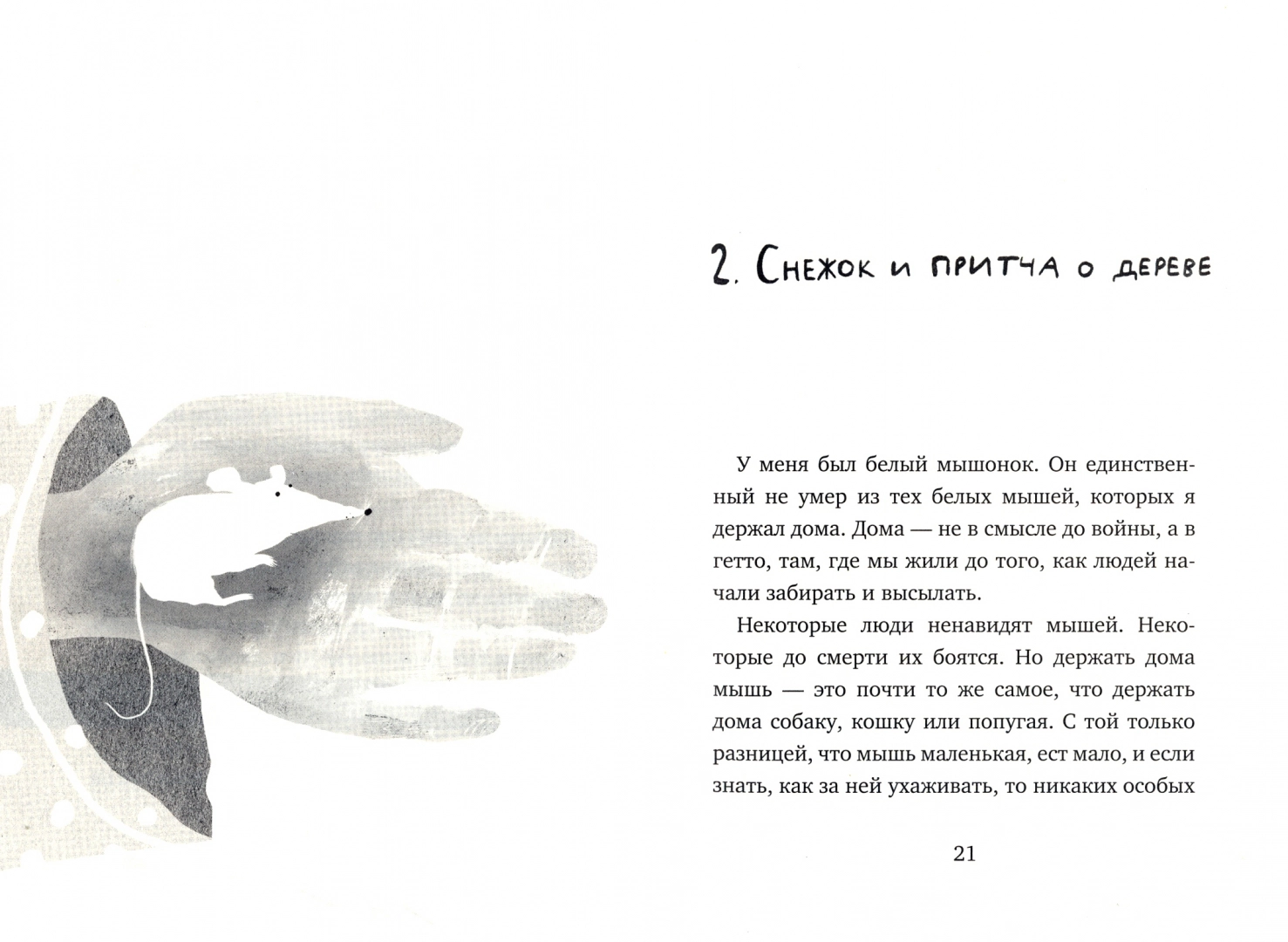 Алекс, герой этого рассказа, скрывается в развалинах разрушенного бомбежкой дома в Варшавском гетто почти с самого начала войны. Этот дом мало чем отличается от пустынного острова, но именно в нем Алекс дожидается возвращения своего отца. Так долго, что Алекс уже почти перестает верить в его возвращение. И все это время он добывает себе пропитание совсем один, как Робинзон Крузо, собиравший себе дом из обломков кораблей. За остальным миром Алекс наблюдает через бинокль – там, за подвальным окошком, люди подчиняются жестоким законам немецкой оккупации, но не скрываются. Дети идут в школу каждое утро… А Алекс – один, с ним только его мышонок Снежок, роман “Робинзон Крузо” и надежда. Надежда снова увидеть отца.