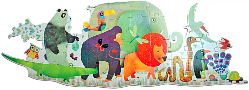 Детям предстоит собрать вместе все детали пазла, чтобы в результате получилась красивая большая картина длиной 1,33 метра. Собирая пазл Djeco, ребёнок постепенно постигает принцип сложения целого из кусочков, делая очередное маленькое открытие.