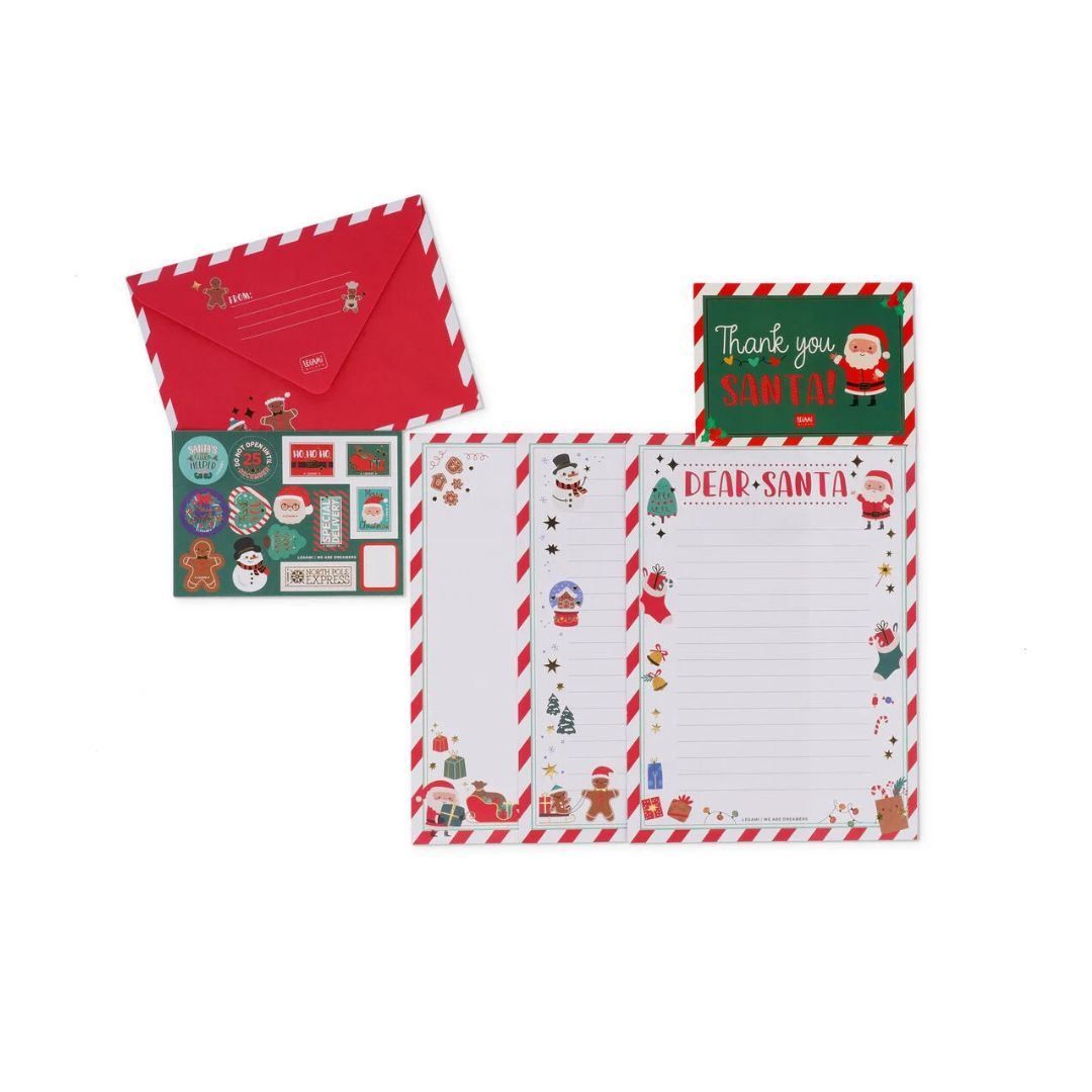 Чтобы быть уверенным, что сообщение дойдет до него, воспользуйтесь набором письмо Санте. Запишите все, что желаете найти под елкой, на трех чистых страницах, вложите их в тематический конверт, добавьте открытку со словами благодарности и украсьте всё наклейками из набора. Теперь остается только отправить письмо и ждать!
