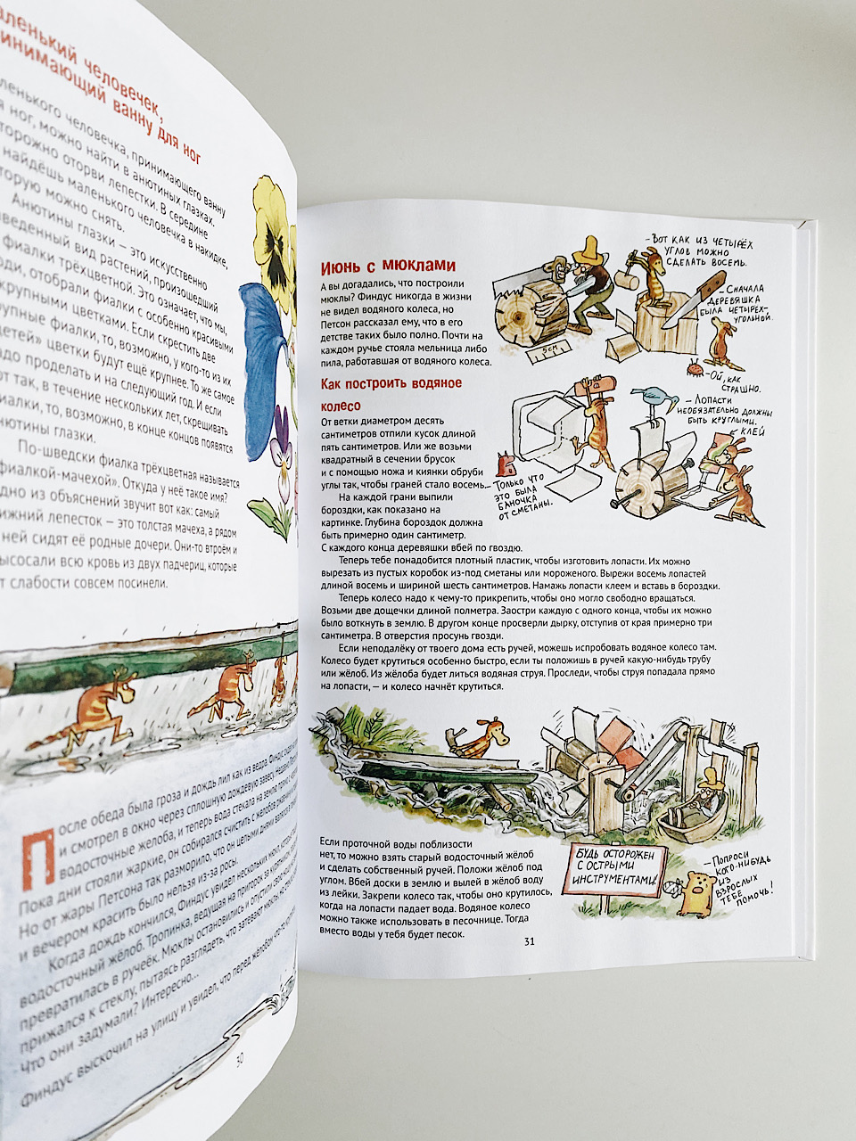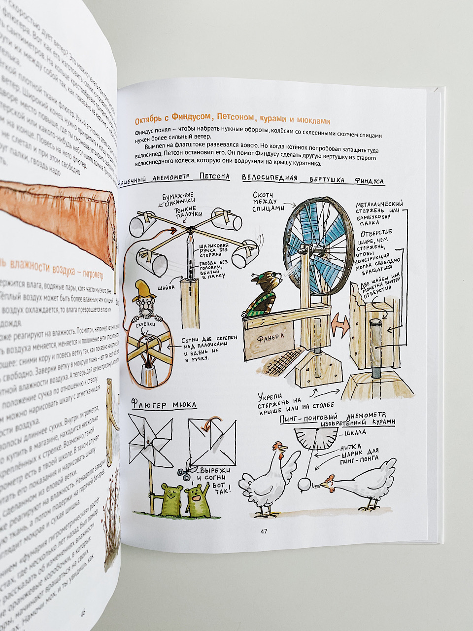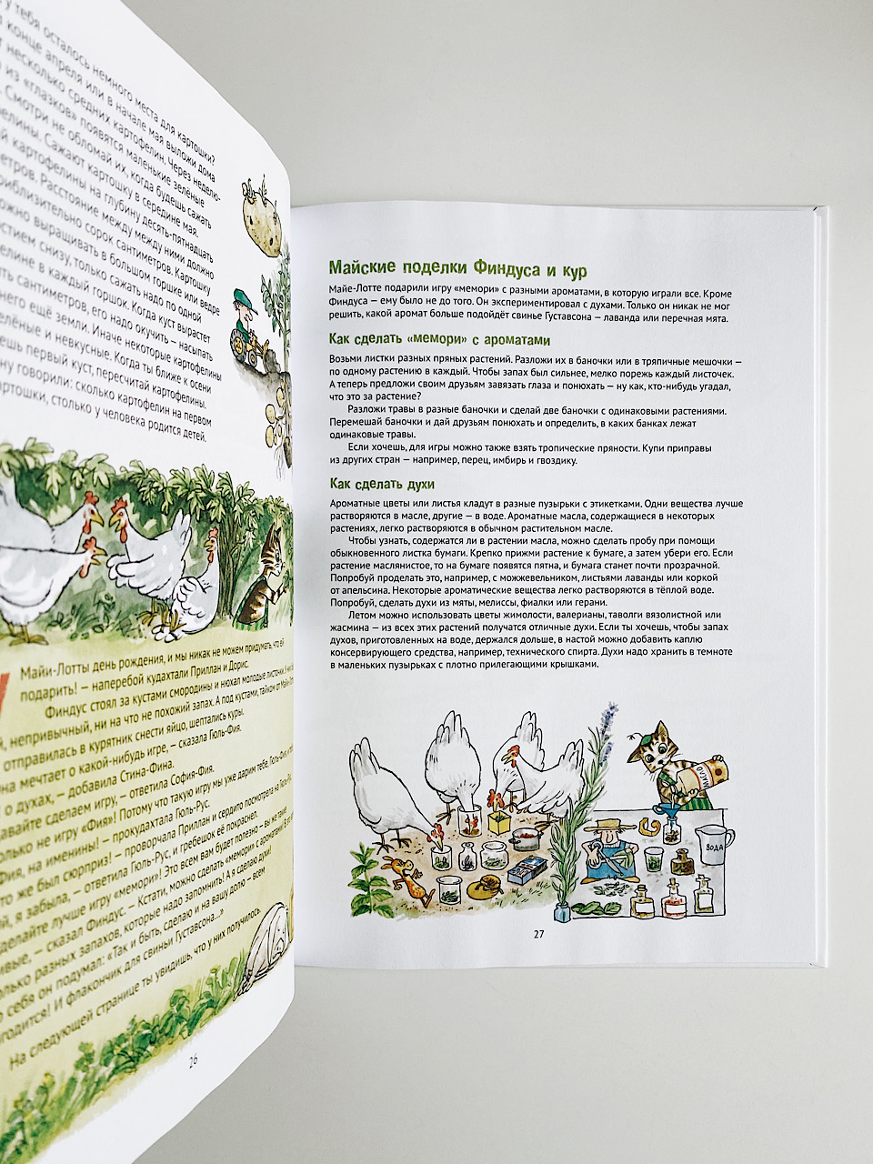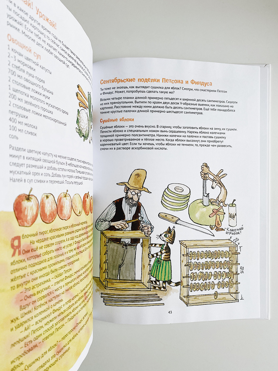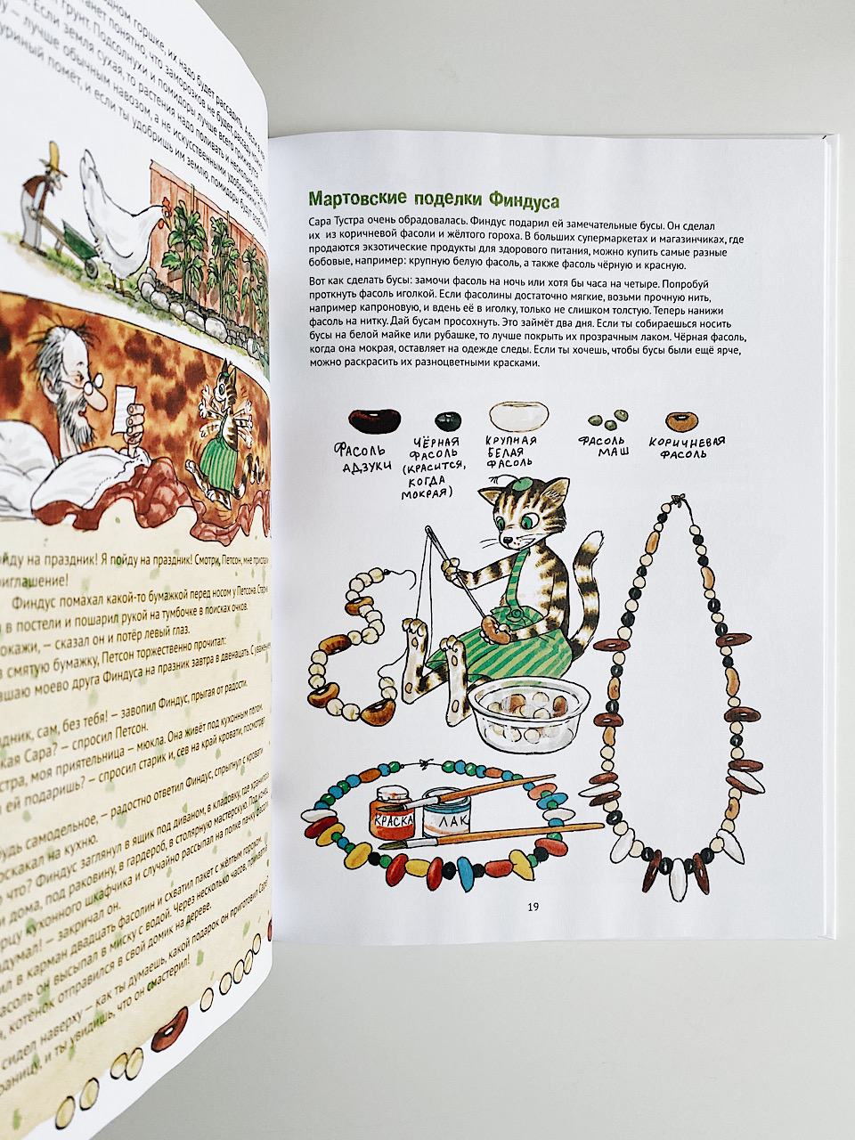 Старик Петсон – мастер на все руки, а его котёнок Финдус обожает придумывать. Они научат тебя мастерить фигурки животных из шишек, пересаживать растения и проращивать семена, делать бусы из гороха с фасолью, печь вкусный пирог с красной смородиной, строить домик из палочек для мороженого и даже разводить головастиков! Самое замечательное в том, что всё, описанное в этой книге, можно сделать дома.