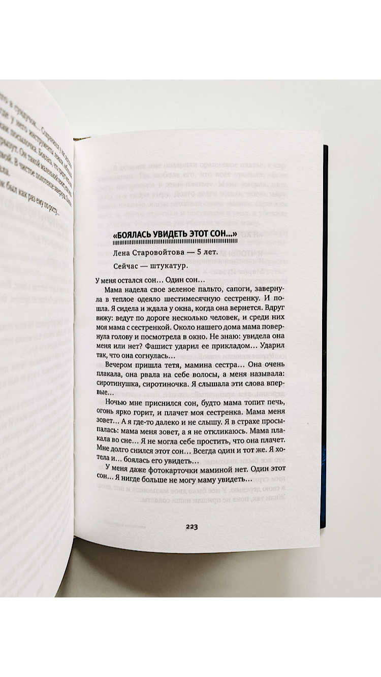 В “Последних свидетелях” – воспоминания о Великой Отечественной детей, самых беспристрастных и самых несчастных ее свидетелей. Война, увиденная детскими глазами, оказалась еще страшнее, чем запечатленная женским взглядом в книге “У войны не женское лицо