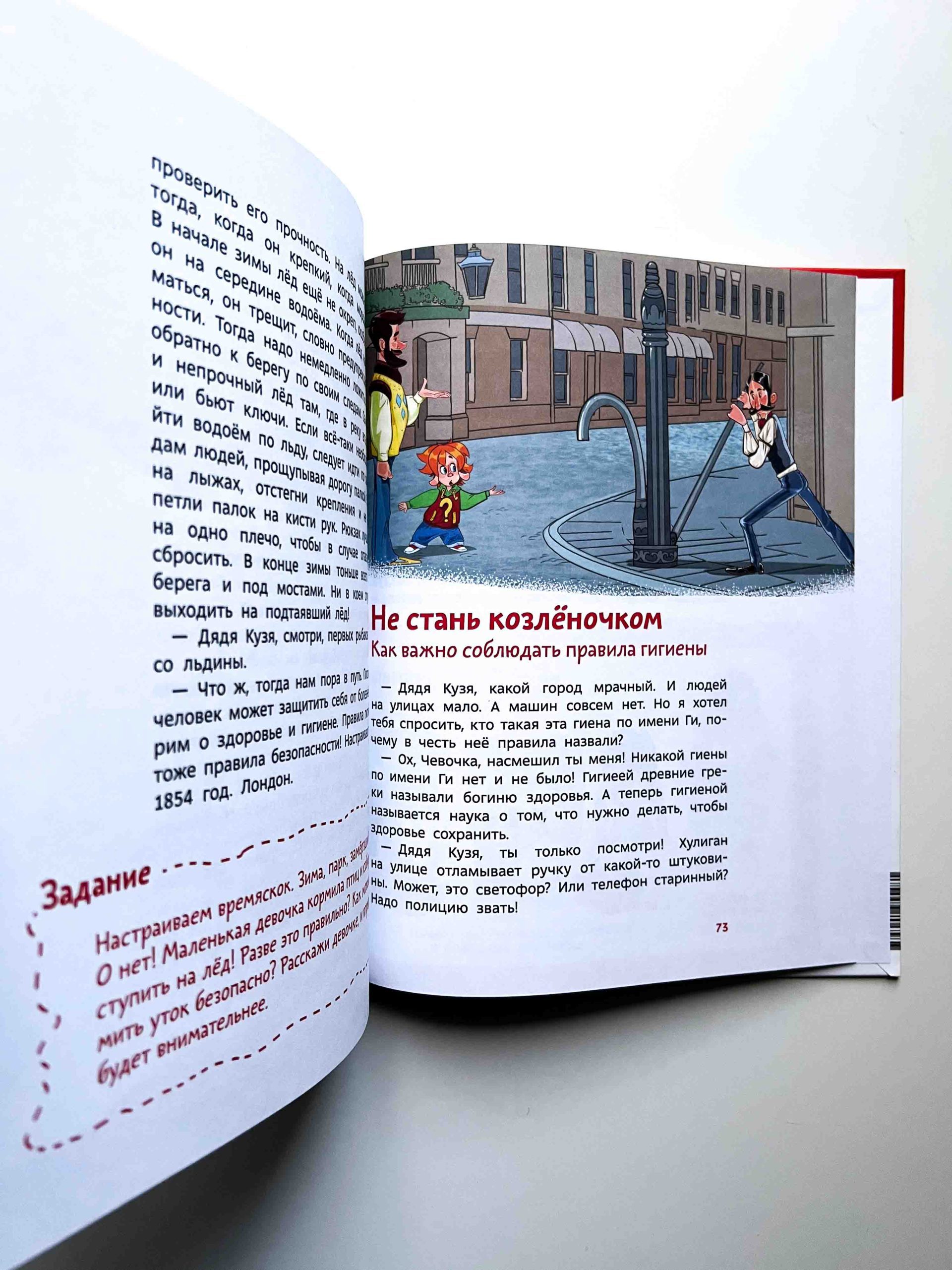 Из этой энциклопедии ребята узнают, как не попасть в опасную ситуацию. Вместе с Чевостиком и дядей Кузей они отправятся на детскую площадку, в бассейн и на стройку, напишут правила безопасного поведения, поймут, как избежать пожара и как вести себя при стихийных бедствиях. А еще познакомятся с правилами дорожного движения и основами гигиены.