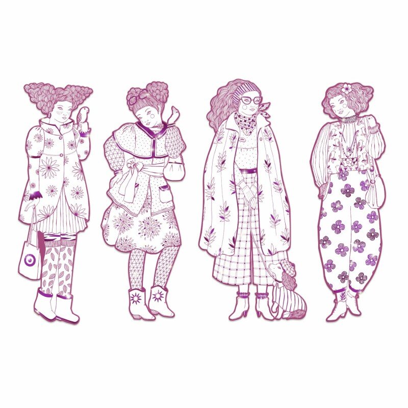 4 фигуры девочек из плотного картона высотой 32 см. В образе каждой из подруг уже есть блестящие элементы, раскрась их в актуальные цвета, чтобы они стали еще ярче.