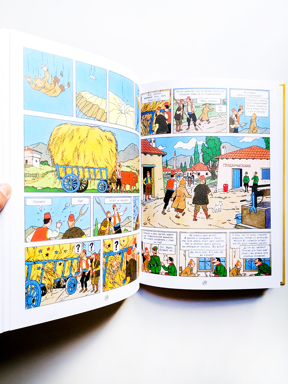 Восьмой том «Приключений Тинтина» вышел в роковом для Европы и для всего мира 1939 году (речь о первой, черно белой версии; цветная появилась в 1947). Неудивительно, что его атмосфера проникнута тревогой: автора, как и все население крохотной Бельгии, не могли не беспокоить события в соседней Германии. К этому времени Эрже уже понял, что в текущих условиях конкретики лучше избегать и в качестве места действия выбирать вымышленные государства – прием, успешно реализованный в «Сломанном ухе». На место противоборствующих южноамериканских республик Сан-Теодорос и Нуэво-Рико пришли две противоборствующие балканские страны: Сильдавия и Бордюрия.