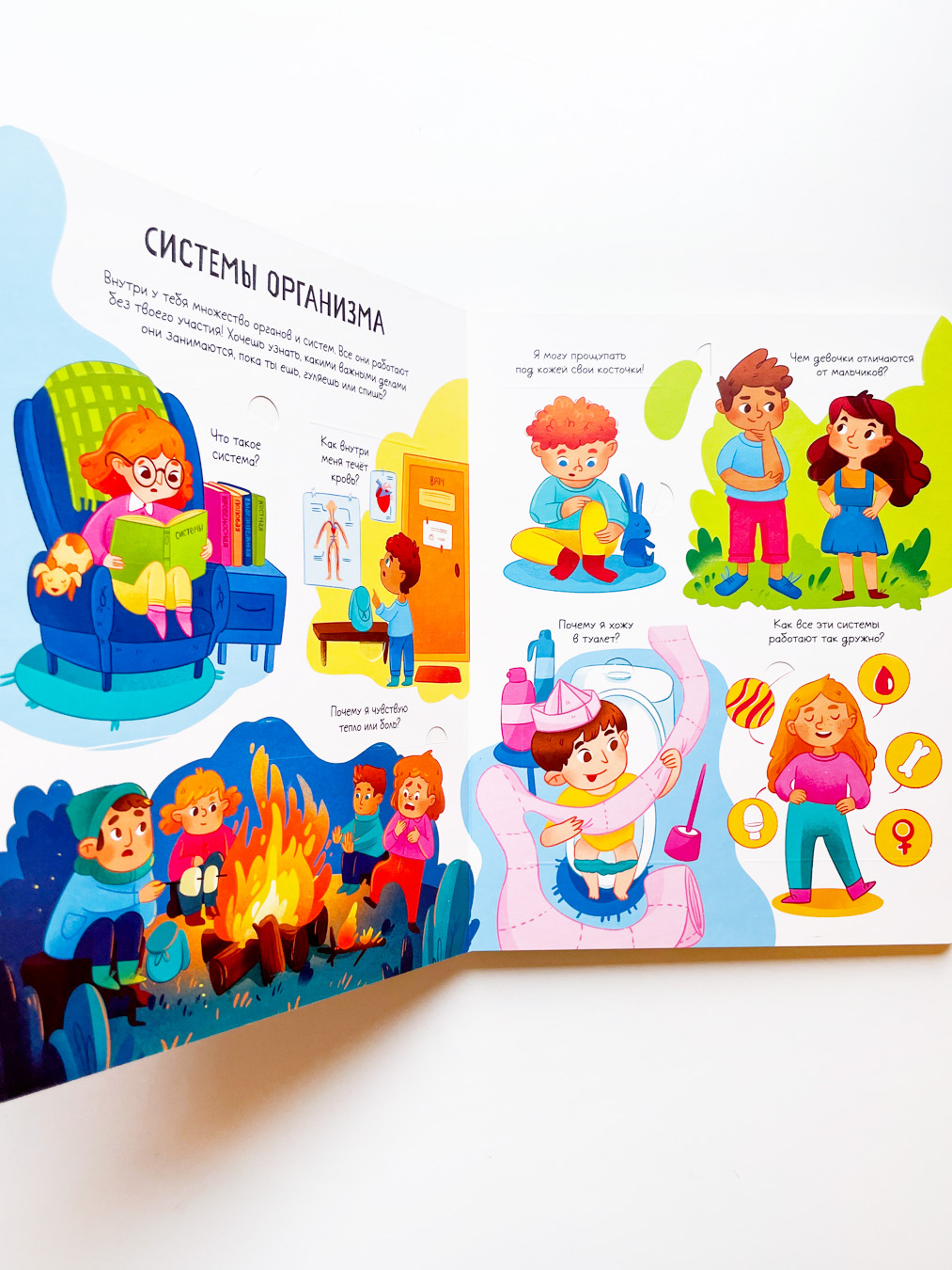 Из чего состоит тело и что оно умеет? Как работают разные органы и системы? Как увидеть то, что что у нас внутри? Сколько в теле костей? Почему, когда порежешься, идёт кровь? Может ли человек уменьшиться?