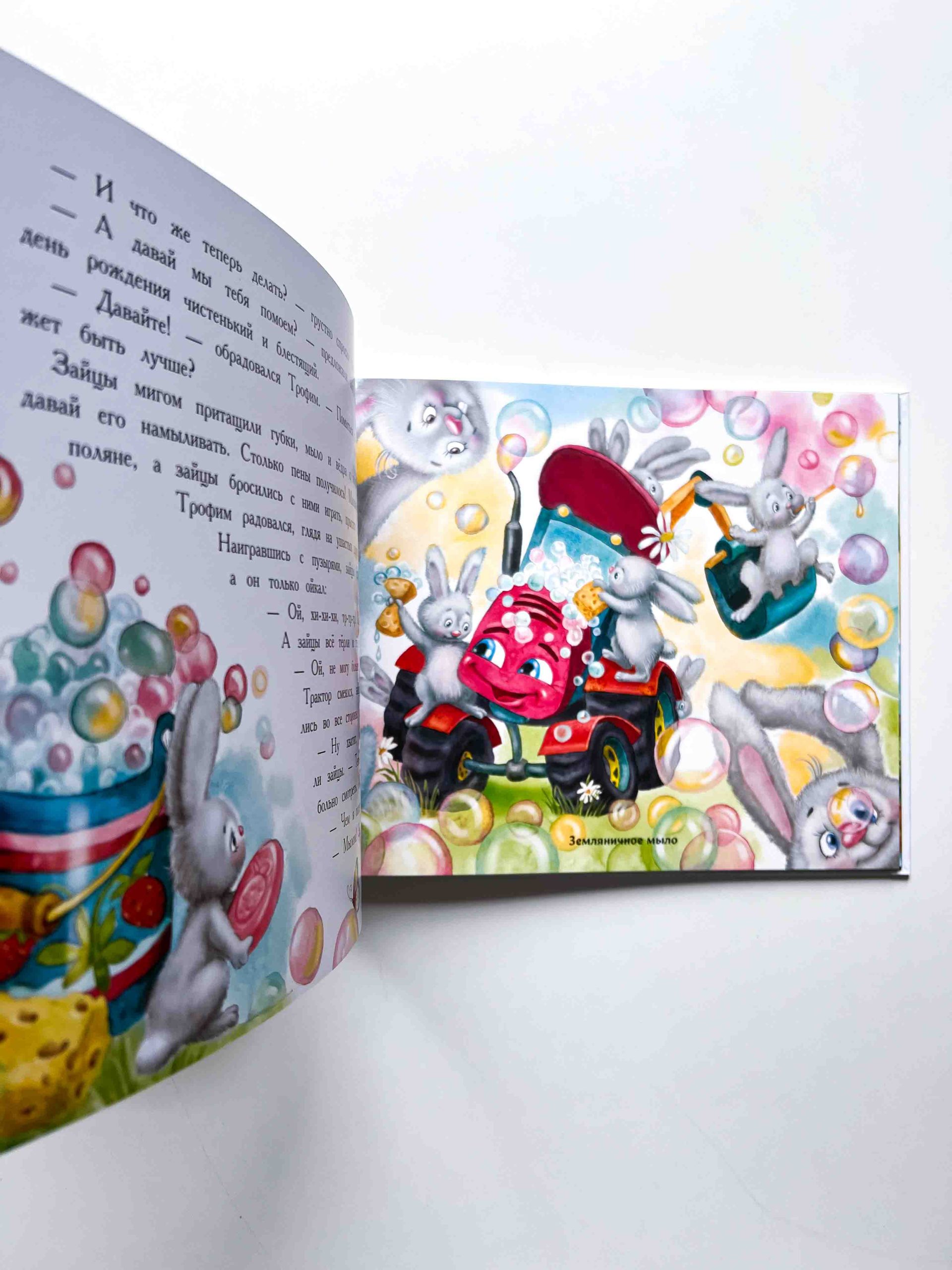 Трактор Трофим вместе со своими друзьями зайцами отправляется на день рождения к медвежонку. Но по дороге им то и дело встречаются зверята, которым необходима помощь Трофима. Успеют ли все гости приехать на день рождения вовремя? Какие подарки получит медвежонок?