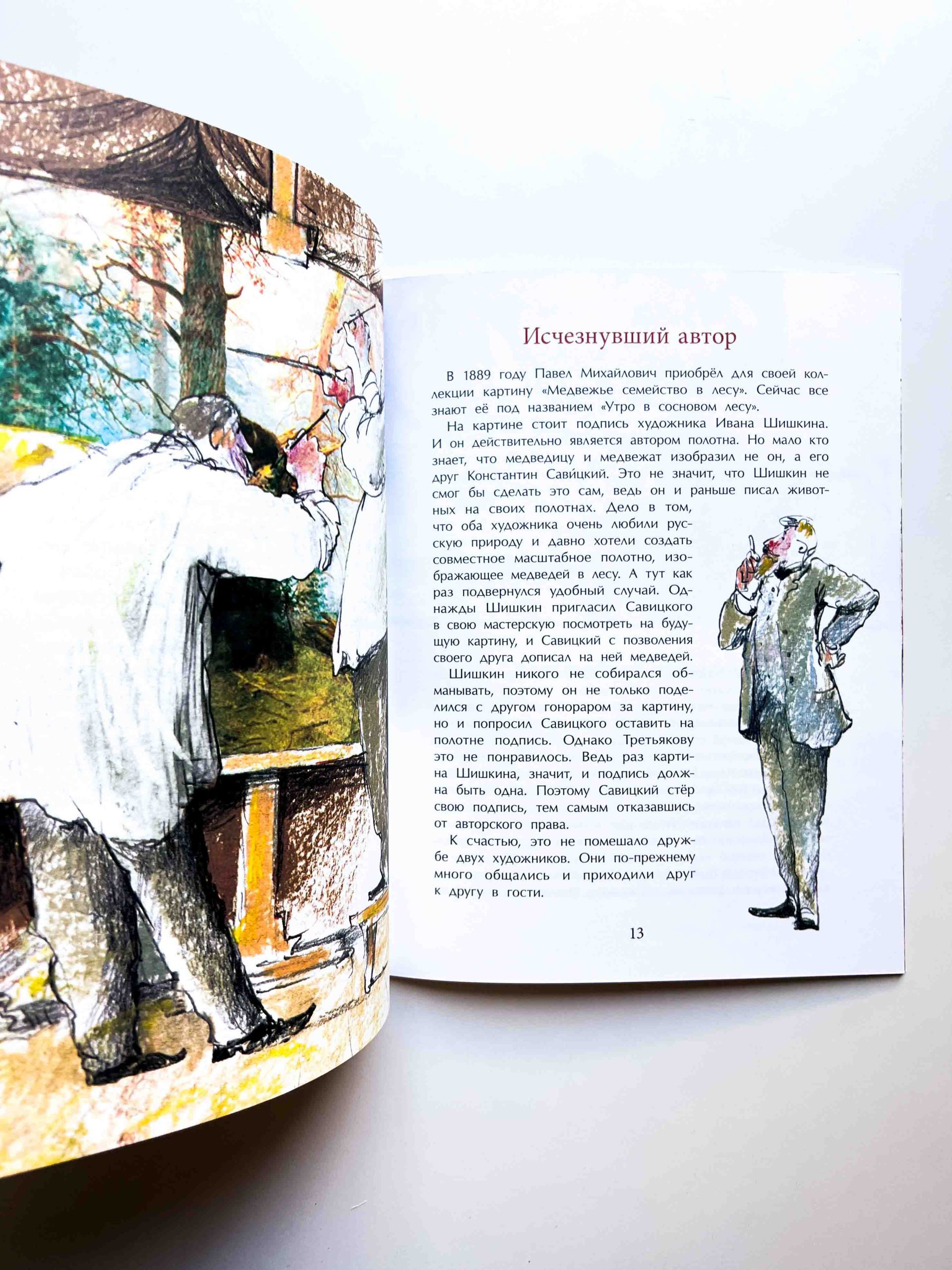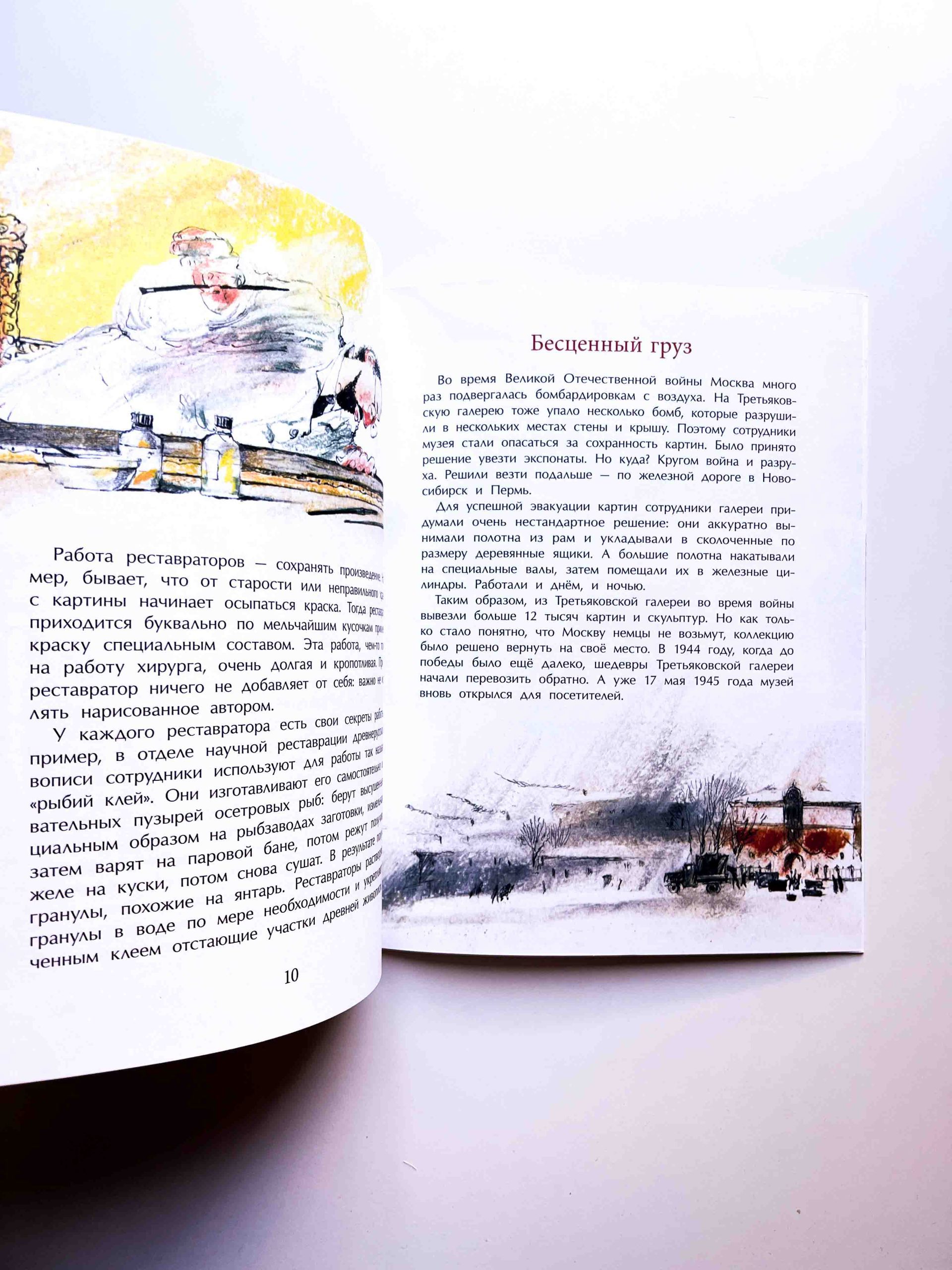 Как появилась знаменитая Третьяковская галерея? Что такое депозитарий, в чём заключается работа реставратора, как картины пережили наводнение и войну? В этой книжке мы расскажем об истории музея, в котором собраны настоящие шедевры художественного искусства, и о его знаменитом основателе, имя которого навсегда осталось на карте Москвы и в сердцах благодарных потомков.