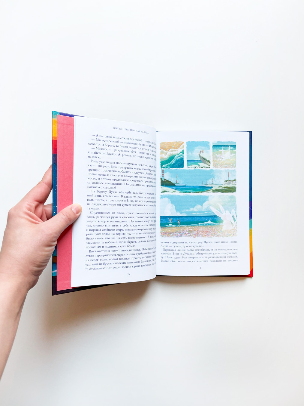 «Ночная радуга» — вторая часть фэнтези-цикла Марины Ясинской «Восьмирье». Очутившись в Восьмирье, Вика хотела лишь поскорее оказаться дома. К счастью, на одном из Осколков этого мира есть человек, который знает дорогу обратно, и Вика благополучно до него добралась. Казалось бы, приключения подходят к концу и скоро она вернётся домой. Но на самом деле путешествие по Восьмирью только начинается! Вике предстоит вытащить товарища из сетей мрачного Тумарья, узнать тайну своего самодельного кулона и маминого прошлого, обрести новых друзей и союзников, столкнуться с предательством и вновь бежать через Тумарье на другой Осколок, спасаясь от разыскивающих её констеблей.