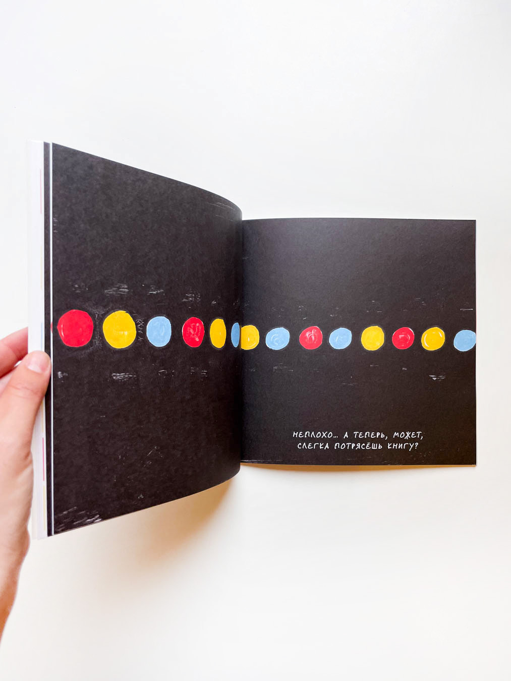 «Живая книга» невероятно воздействует на воображение детей и захватывает внимание сильнее любой электронной игрушки. Подуйте, потрясите, похлопайте в ладоши, открывайте на любой странице и начинайте снова — забавные кружочки развеселят любого!