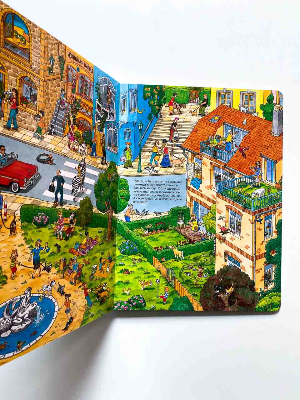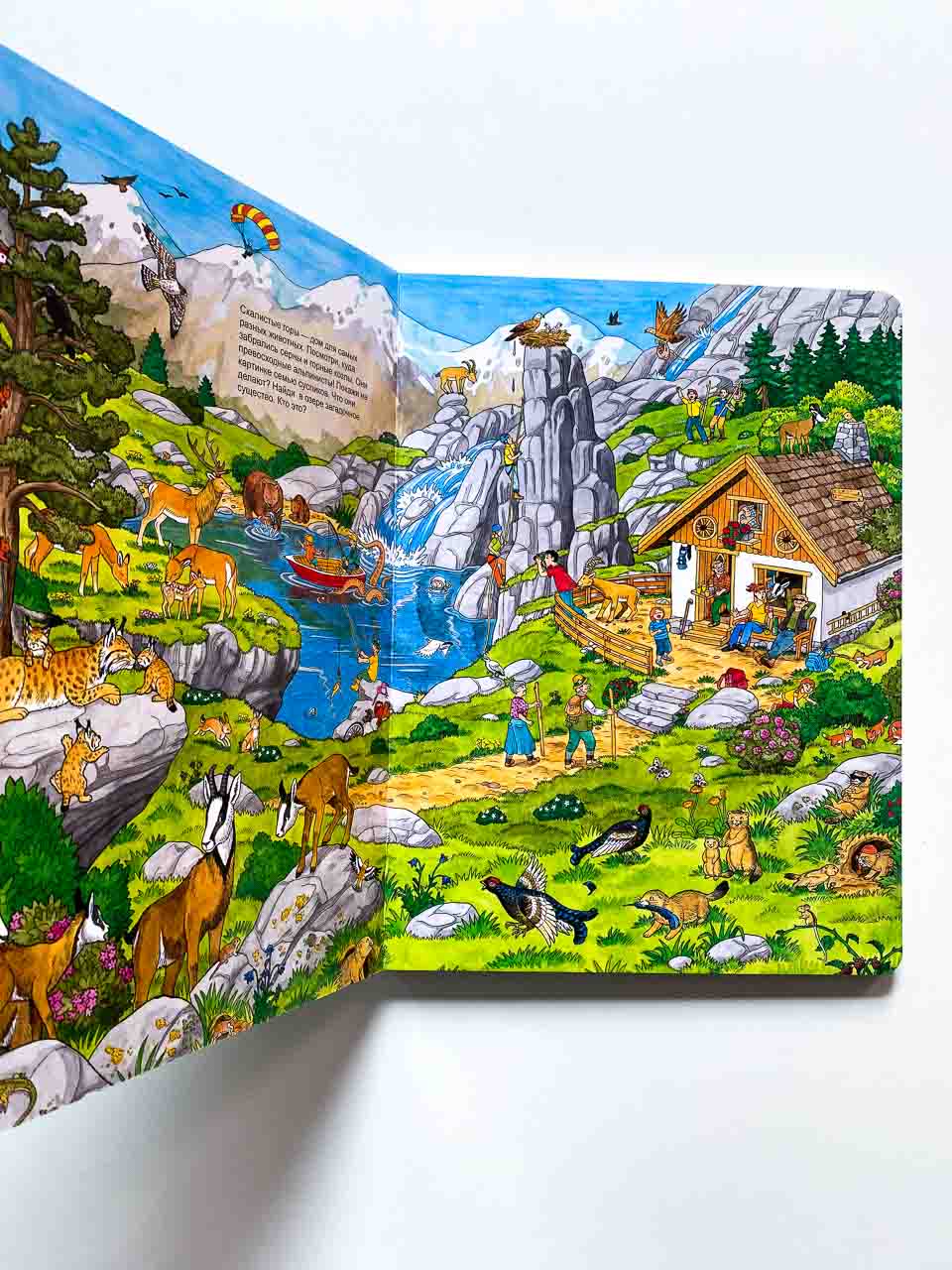 Виммельбух рассказывает о жизни самых разнообразных обитателей нашей планеты. Львы и олени, орлы и киты, жизнь животных в дикой природе и в зоопарке. Маленькие читатели будут много раз возвращаться к этой книге. Следя за приключениями ее героев, они выучат названия животных и узнают многое об их жизни.